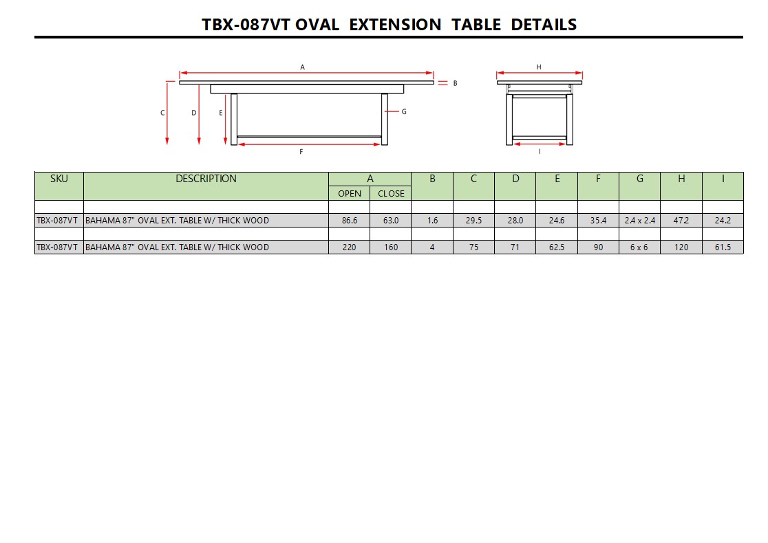 BAHAMA 87″ OVAL EXTENSION TABLE EXTRA THICK
