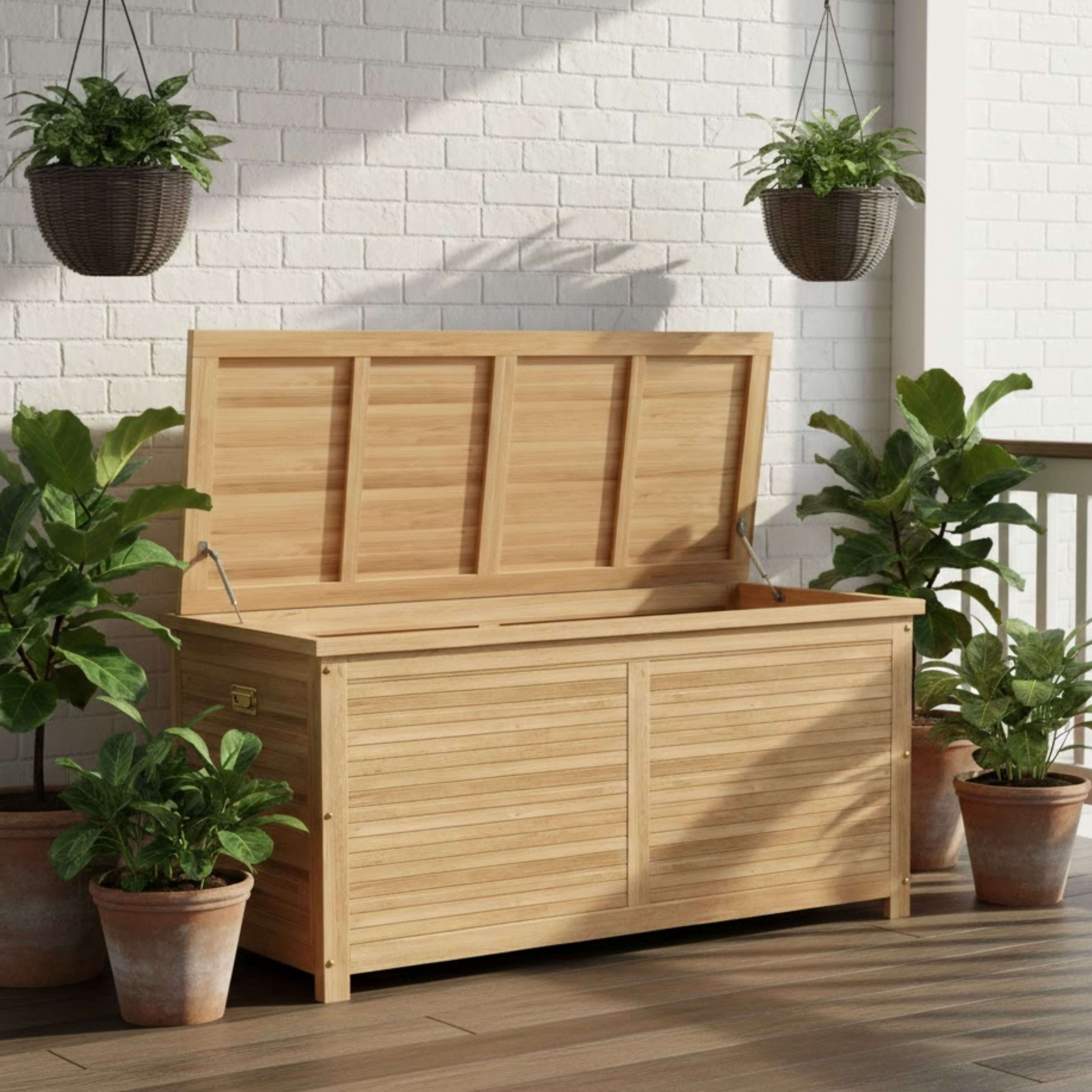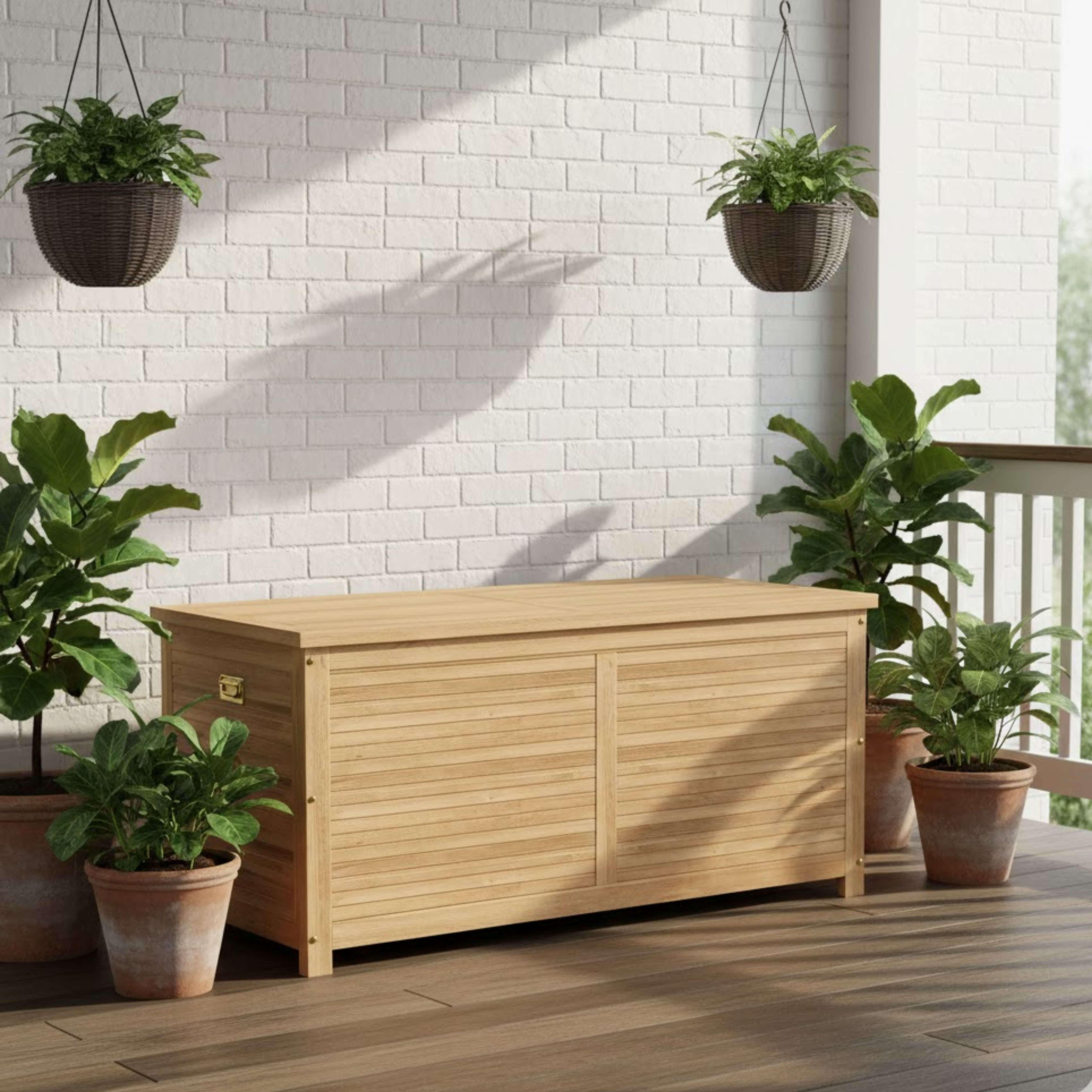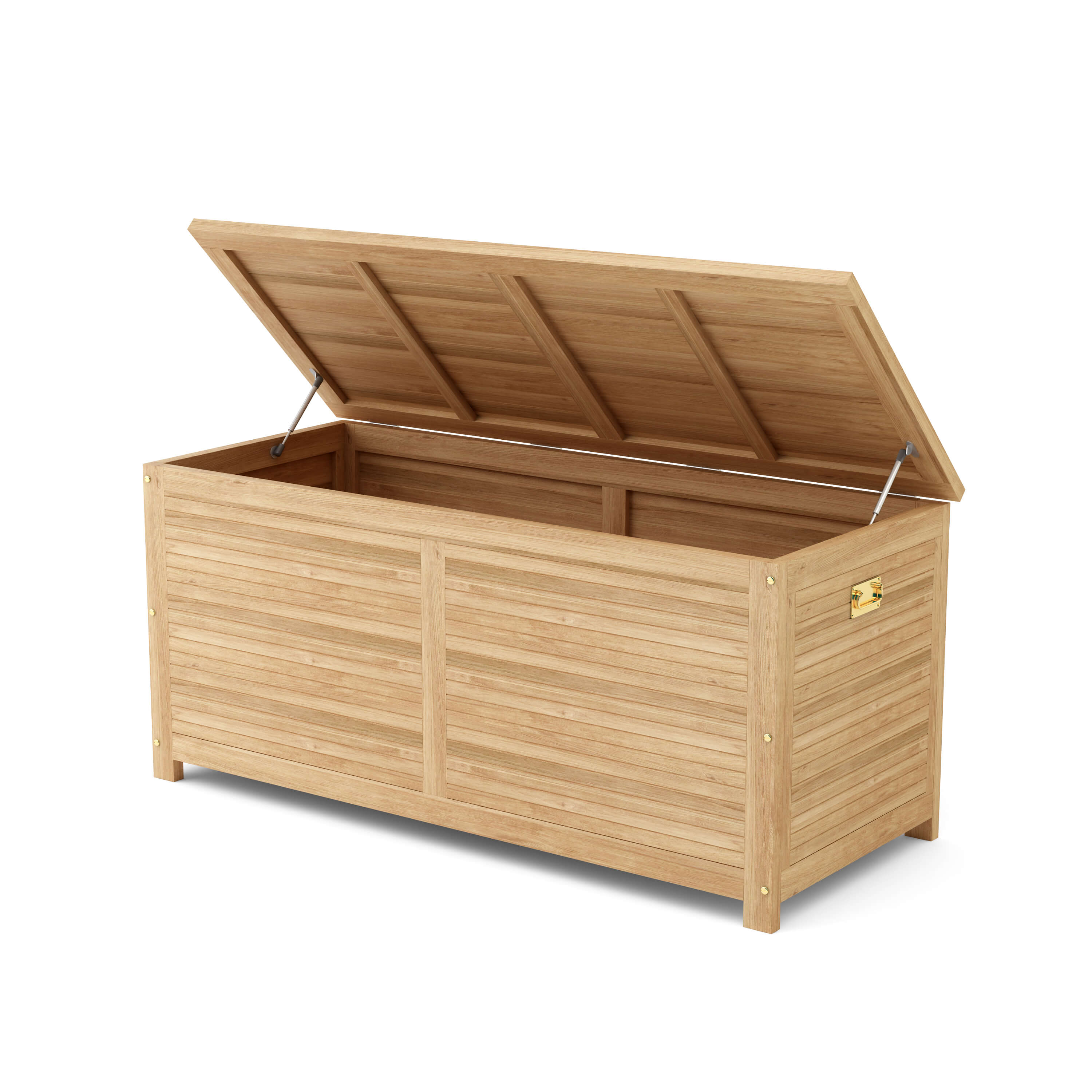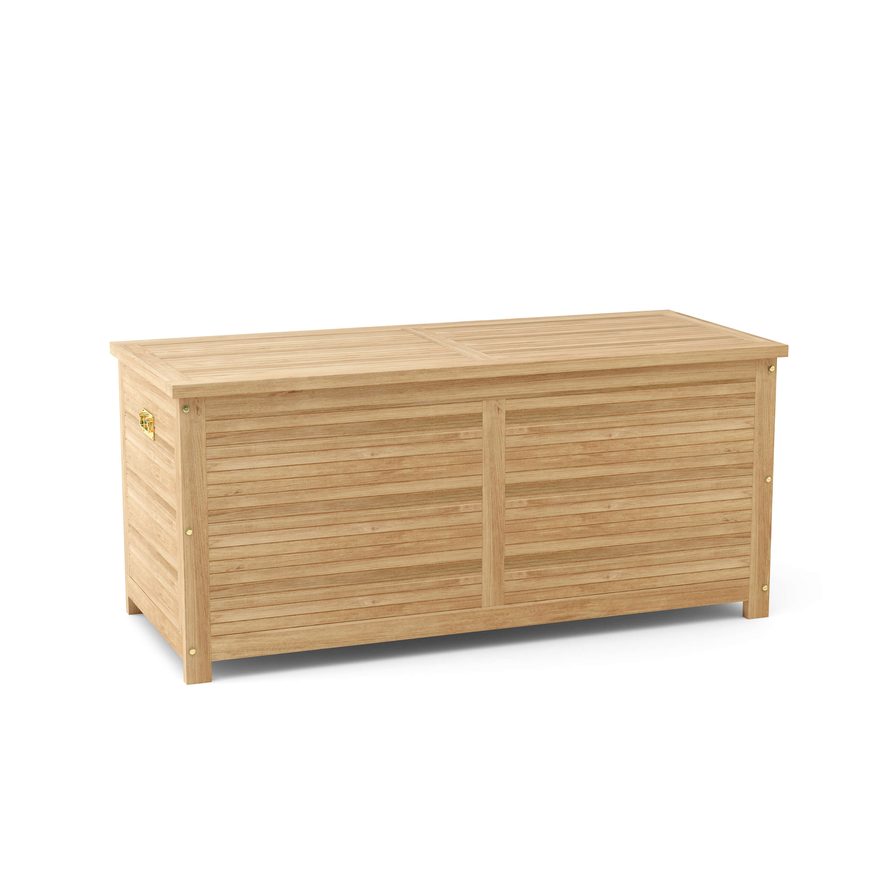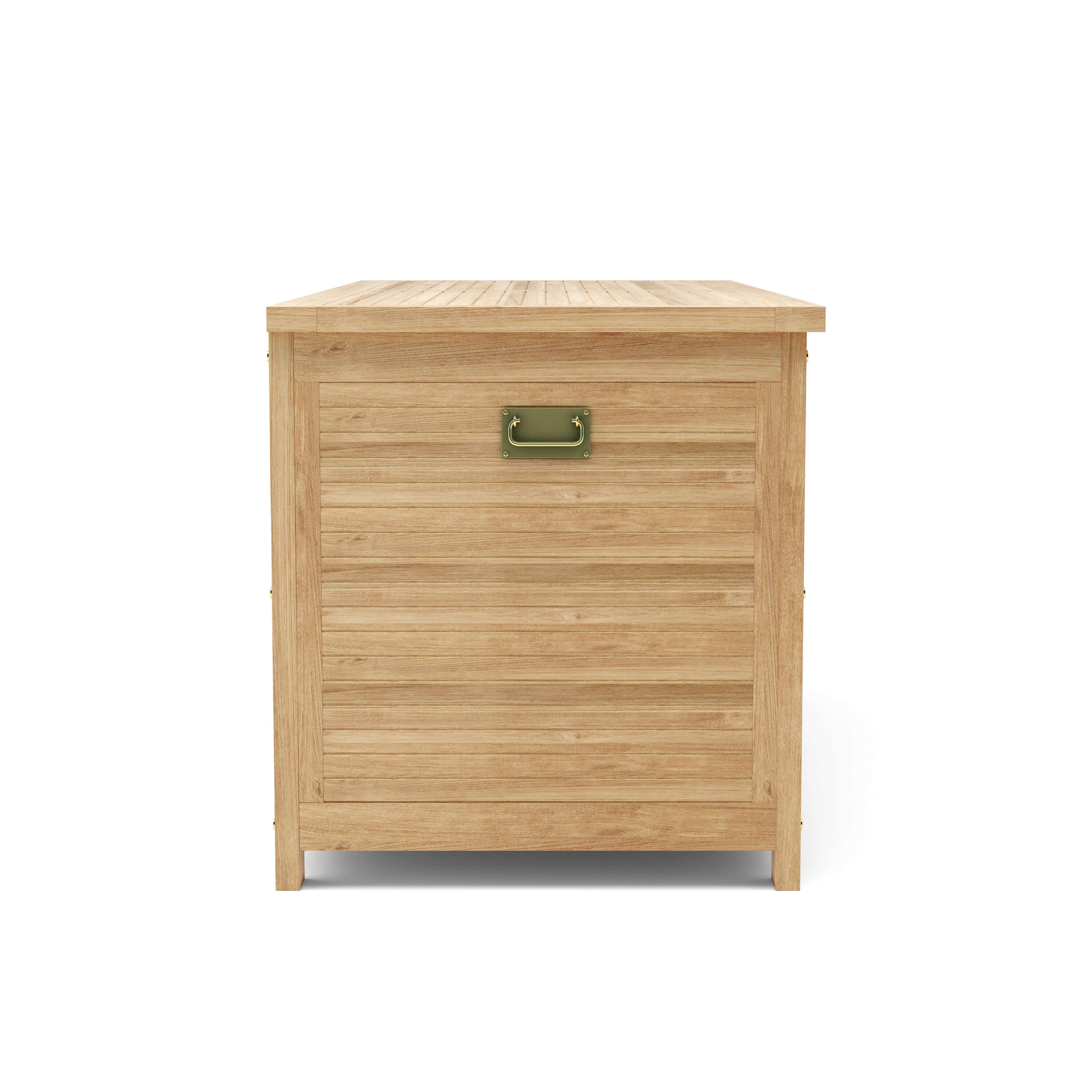 The Camrose Small Storage Box is a stylish way to store items for your backyard, deck, or pool area. It is the perfect accessory to place your outdoor furniture cushions, towels, sports equipment or pool equipment. This Camrose Storage Box can also be used to compliment any room in your home for additional storage such as a children’s toy box or laundry box. Made from All Premium Unfinished Teak wood, it is designed to withstand the weathering sun, rain or hail of the outdoors.