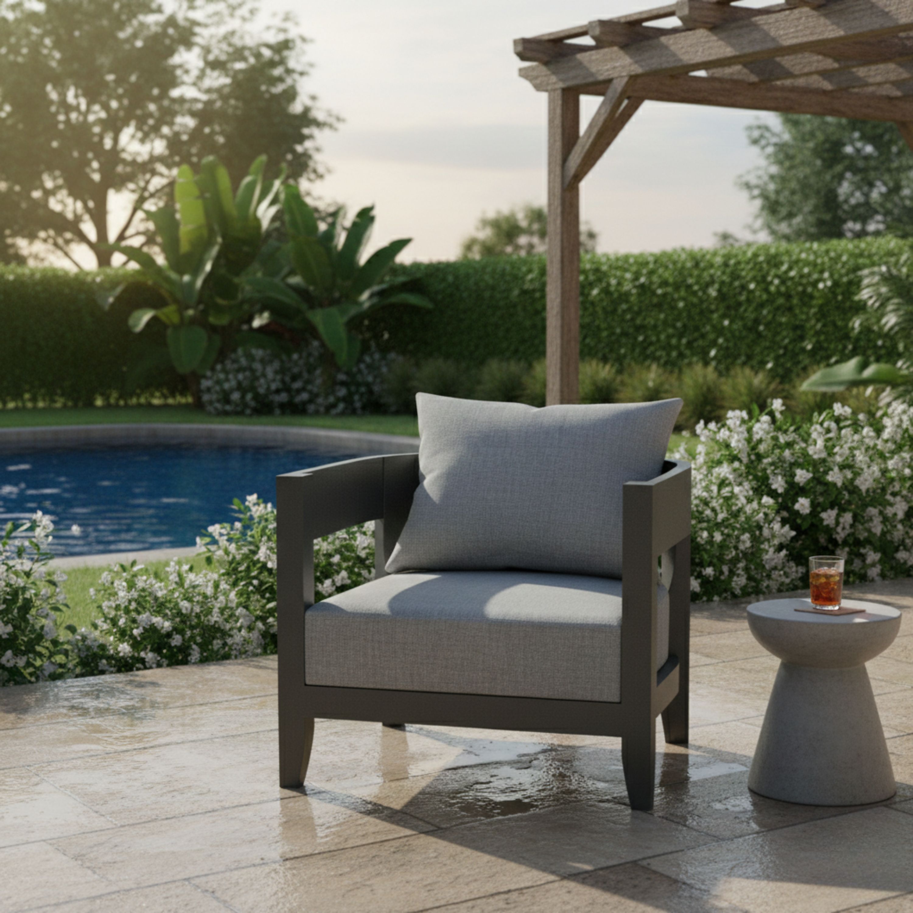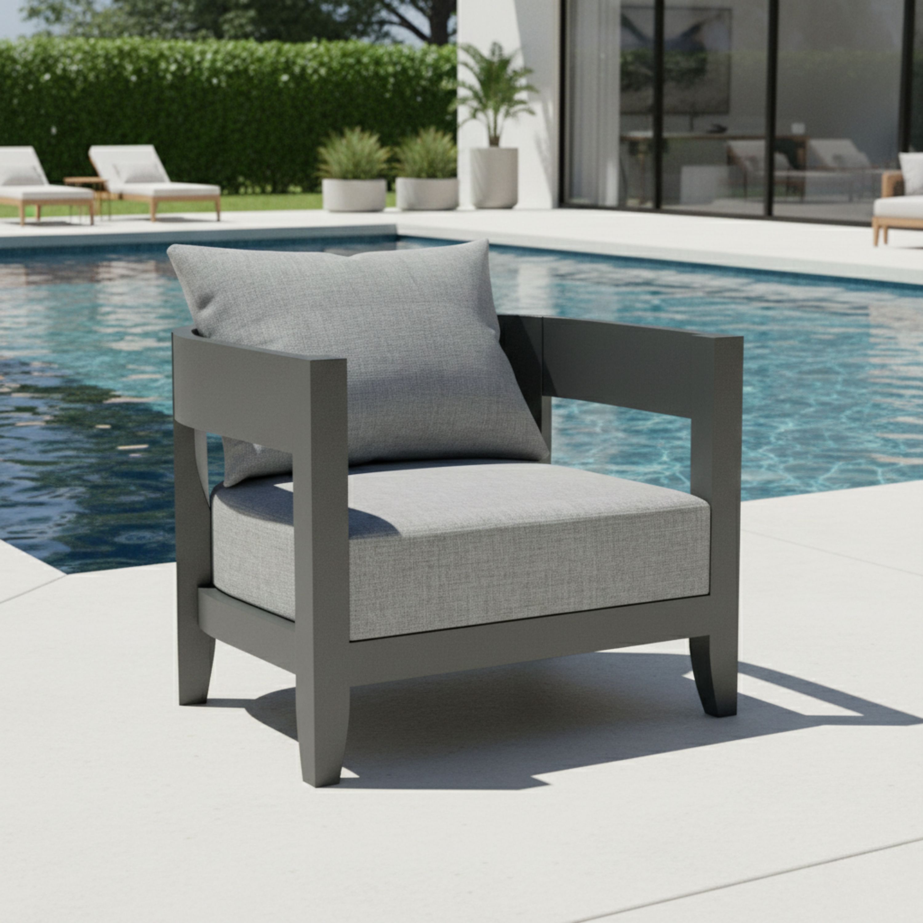 The perfect complement to the patio or yard, the Coronado Deep Seating Aluminum Armchair features a spacious round curve design masterfully machine crafted from a powder coated aluminum frame. Includes 6″ thick Deep Seating Cushions and Pillow from All-Weather Sunbrella fabrics, it ensures a relaxing and comfortable deep seating experience. Add an additional Armchair, Ottoman, Coffee or Side Table and even the Coronado Deep Seating Sofa to create your outdoor deep seating collection.