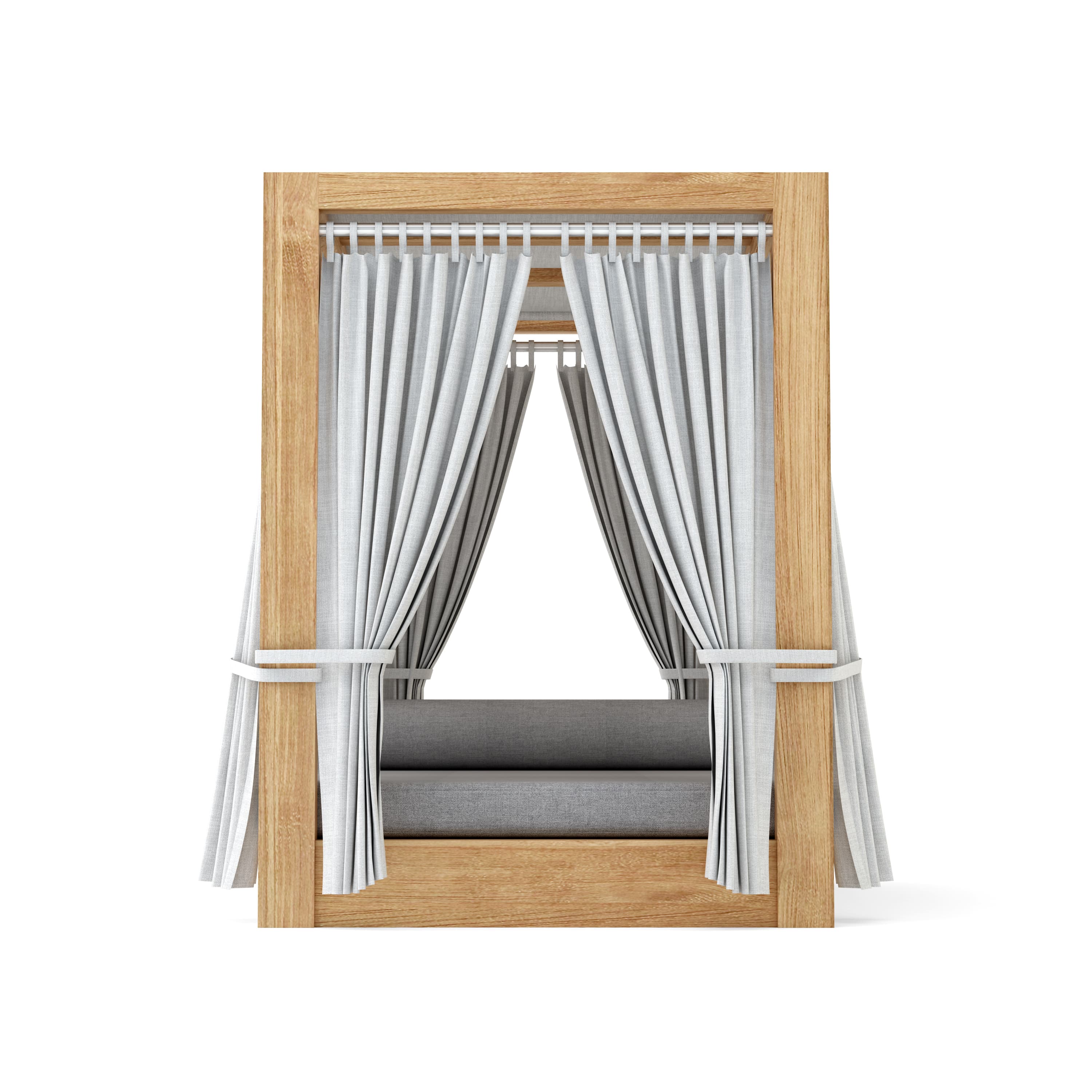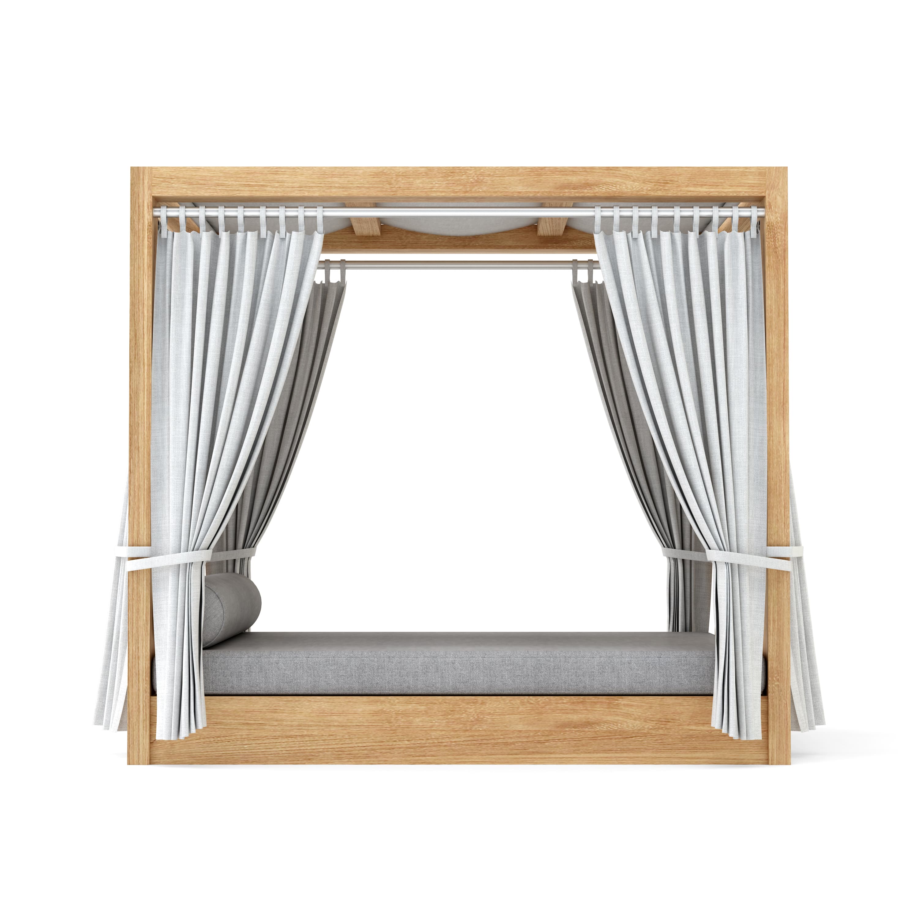 A spacious outdoor daybed made of solid unfinished teak; it’s the perfect way to stay cool by the pool under warm summer months. The Sunbrella Canvas roof covering provides protection against the sun and to protect from wind or additional exposure to direct sunlight, just close the Sunbrella Canvas Curtains by unloosening the Velcro Sunbrella ties. Made of solid premium grade unfinished teak, it also arrives with your color choice of Sunbrella Fabric Cushions with Bolster Pillow, the perfect materials for continued outdoor use.