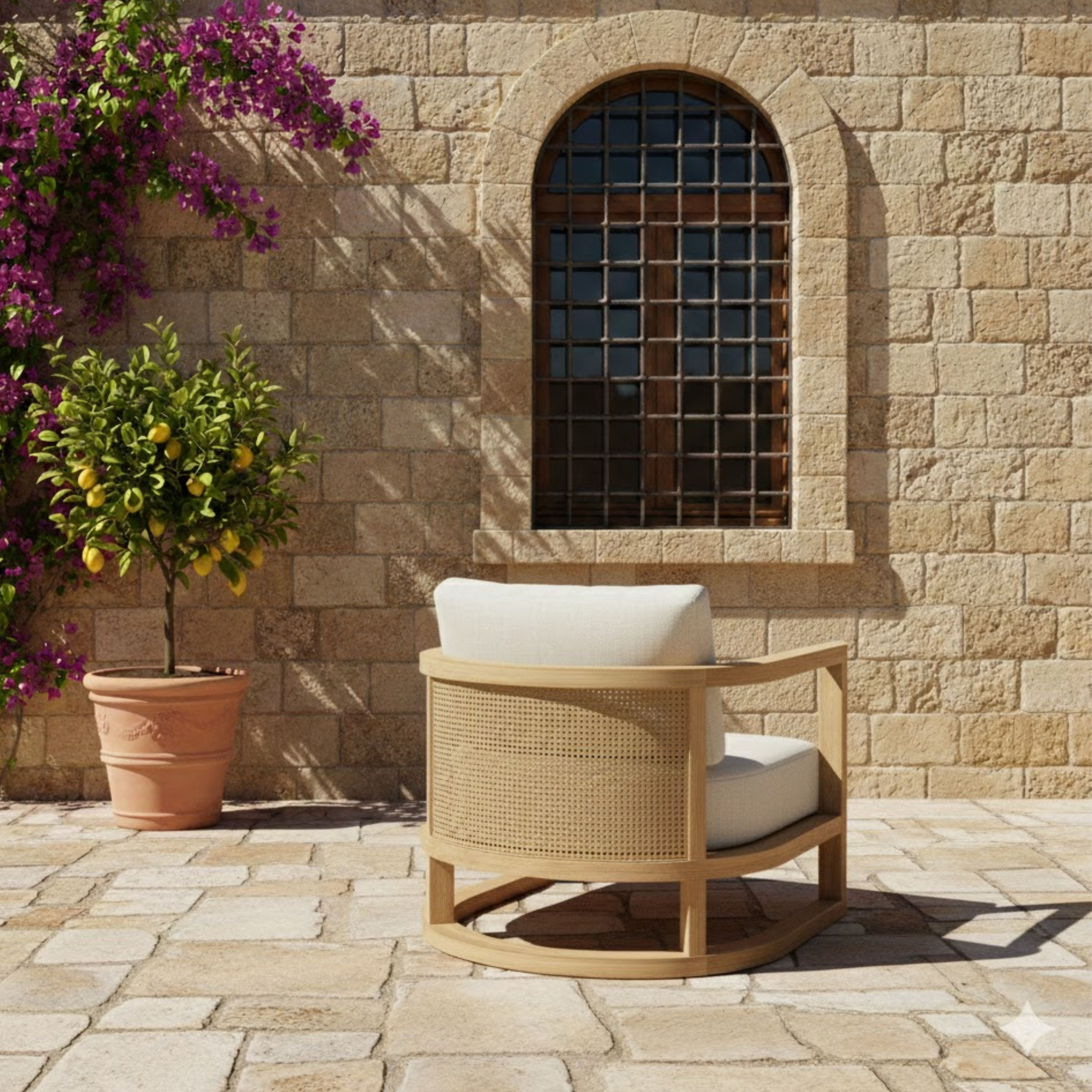 • Ideal for residential and commercial use.• Timeless design blending teak wood, synthetic wicker, and comfortable cushions.