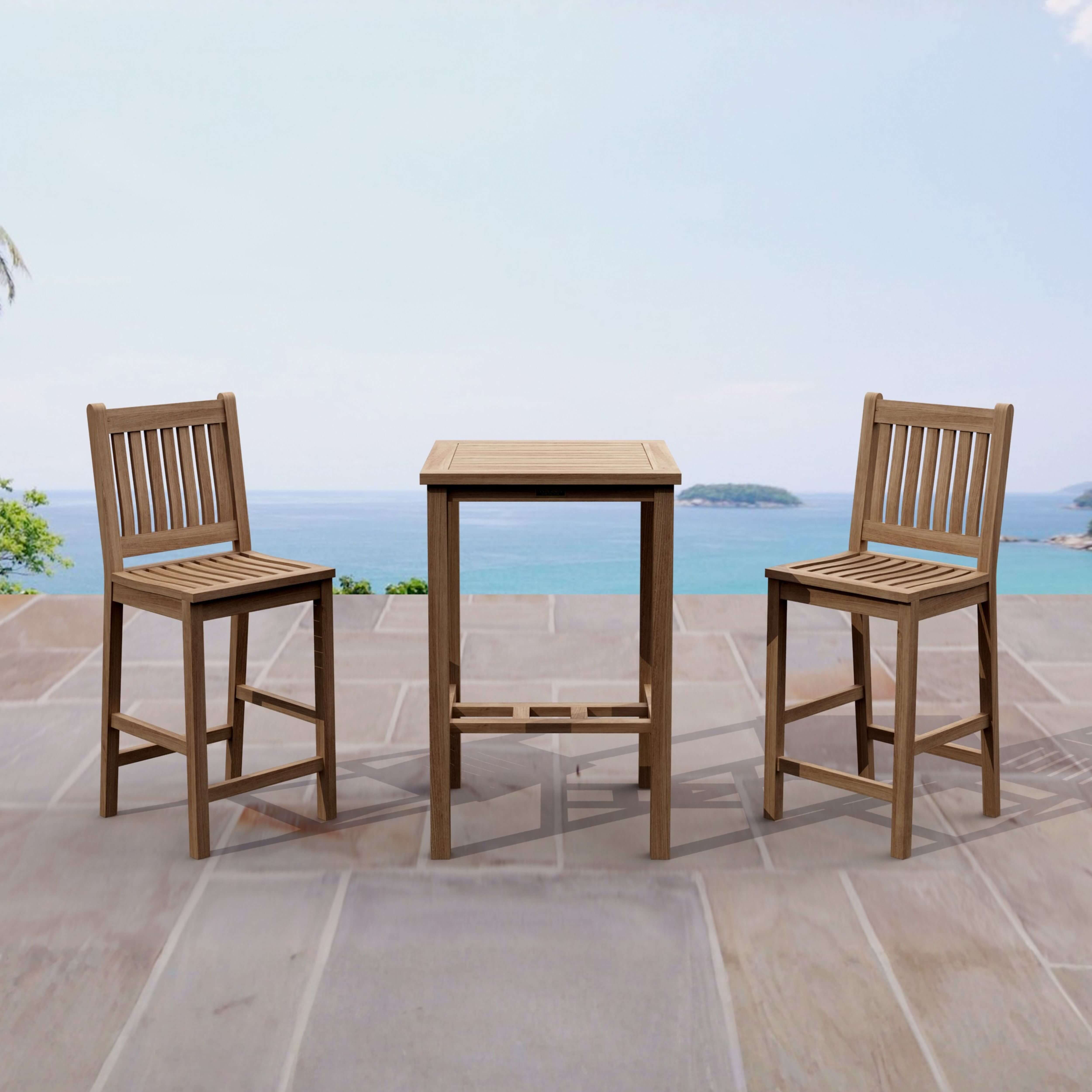 The Avalon bar table and bar chairs are ingenious combination. It designed fits for 2 to 4 people. The bar chair features a sculpted seat, comfortably curved backrest and sturdy footrest for going up and down. Place this bar set in your backyard and it will amazed your family or friends. Add all-weather Sunbrella cushions for more comfort.