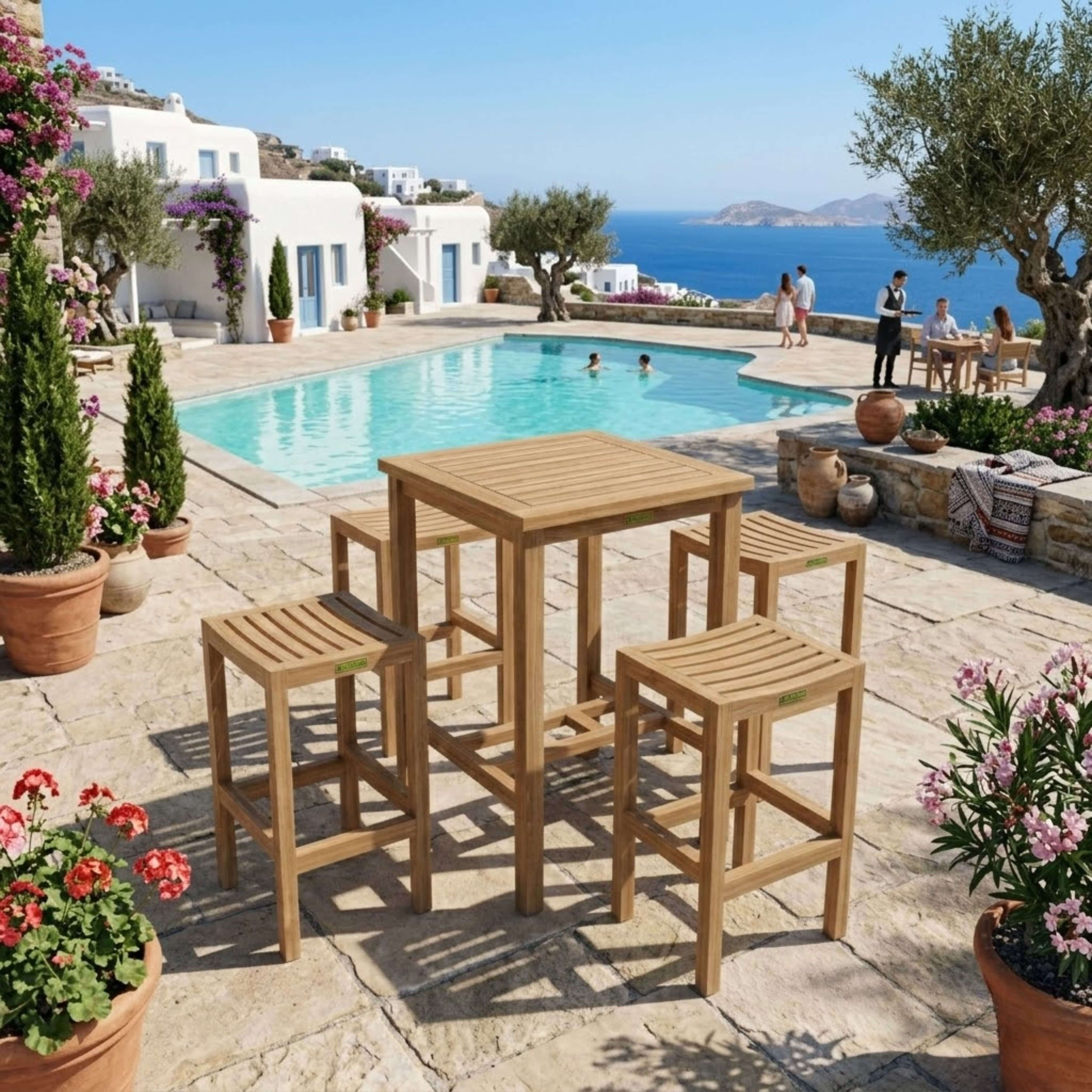 The Avalon bar table and backless bar chairs are ingenious combination. It designed fits for 4 people. The bar chair features a comfortably sculpted seat and sturdy footrest for going up and down. Add all-weather Sunbrella cushions for comfort. Enjoy the rest of the evening accompany with family and friends. Place this bar set in your backyard and it will be the center of your conversation which will amazed your family or friends.