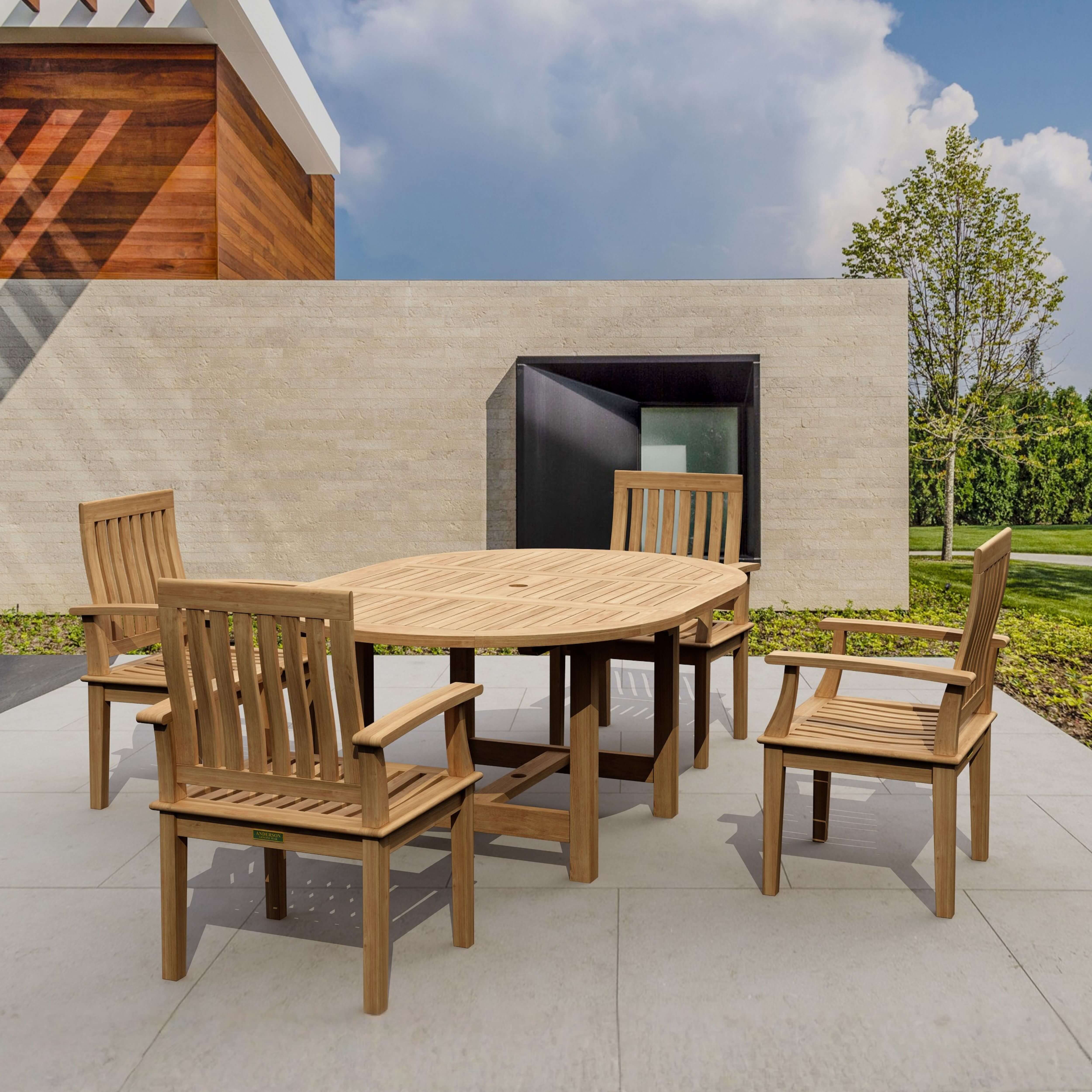The Bahama oval extension table with Brianna Dining Armchair are the perfect indoor outdoor furniture. It is a perfect size for 4-6 people while enjoying the dine surrounding with friends or family. Combining with Brianna armchair will make this set be the center of the evening conversation. The table and chairs are all constructed using mortise and tenon construction from strength and durability. The set made of premium quality plantation grown teak from Indonesia where the best teak tree grows. It is built with durable teakwood to ensure many years of continued use. Add all-weather cushions from Sunbrella for extra comfort. Cushions are sold separately.