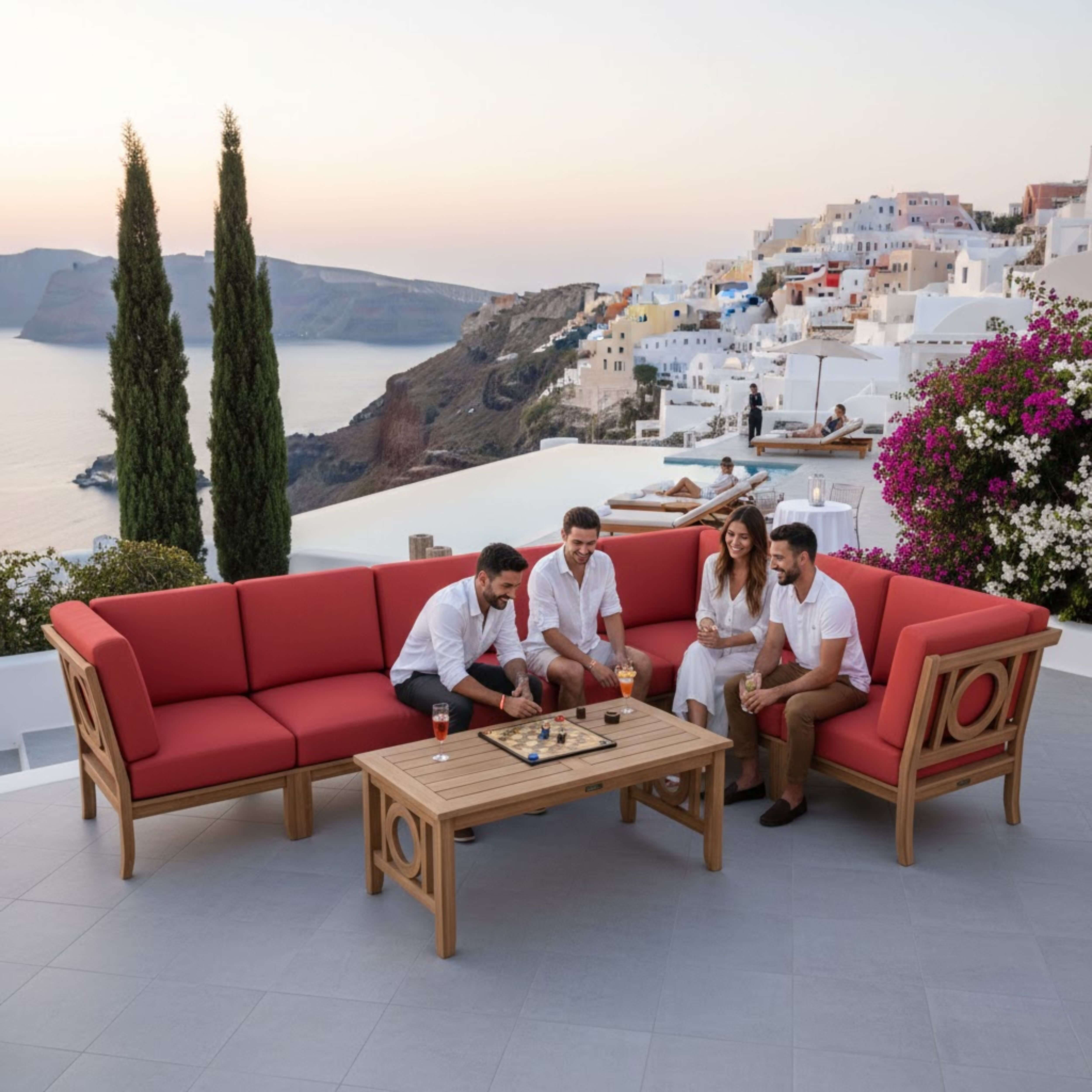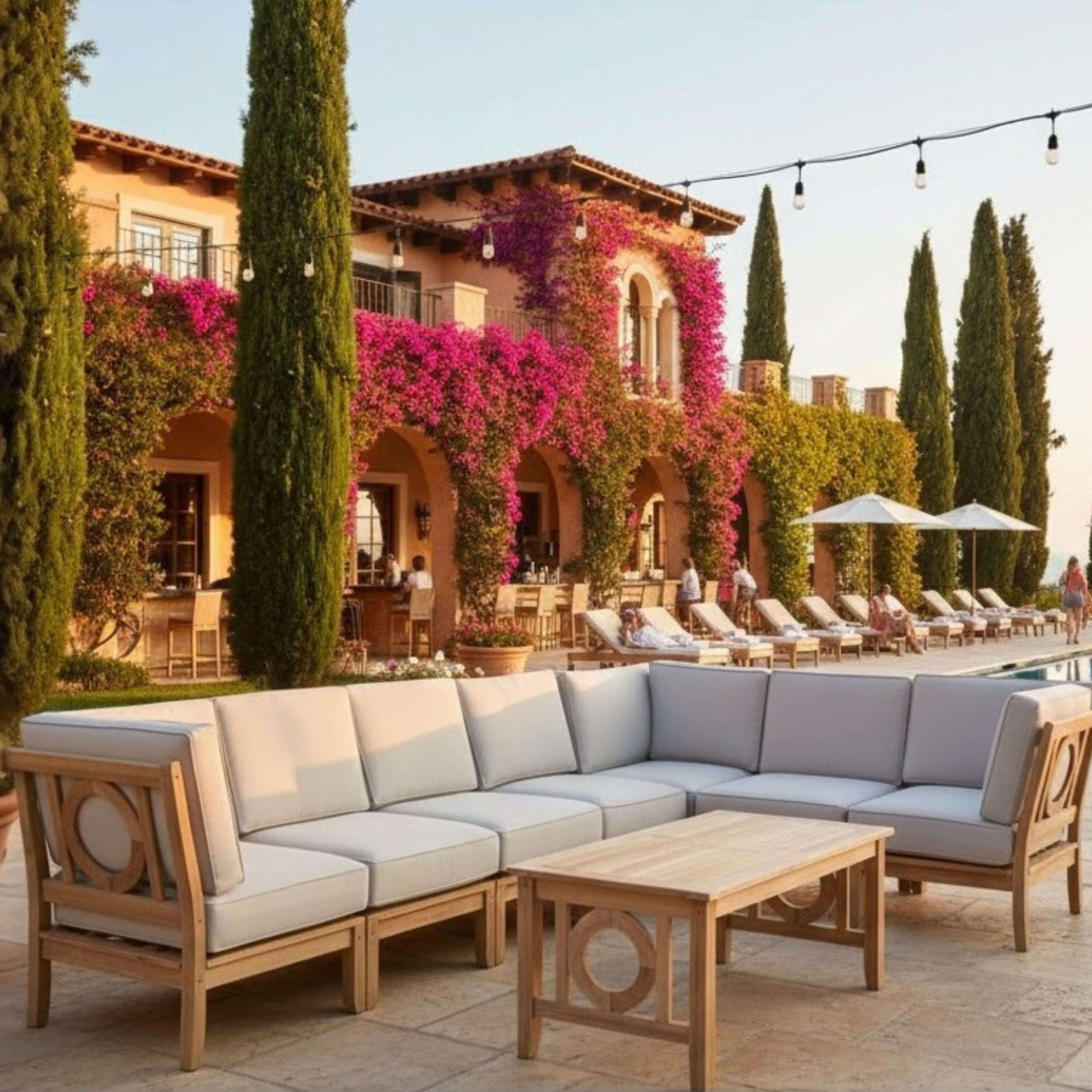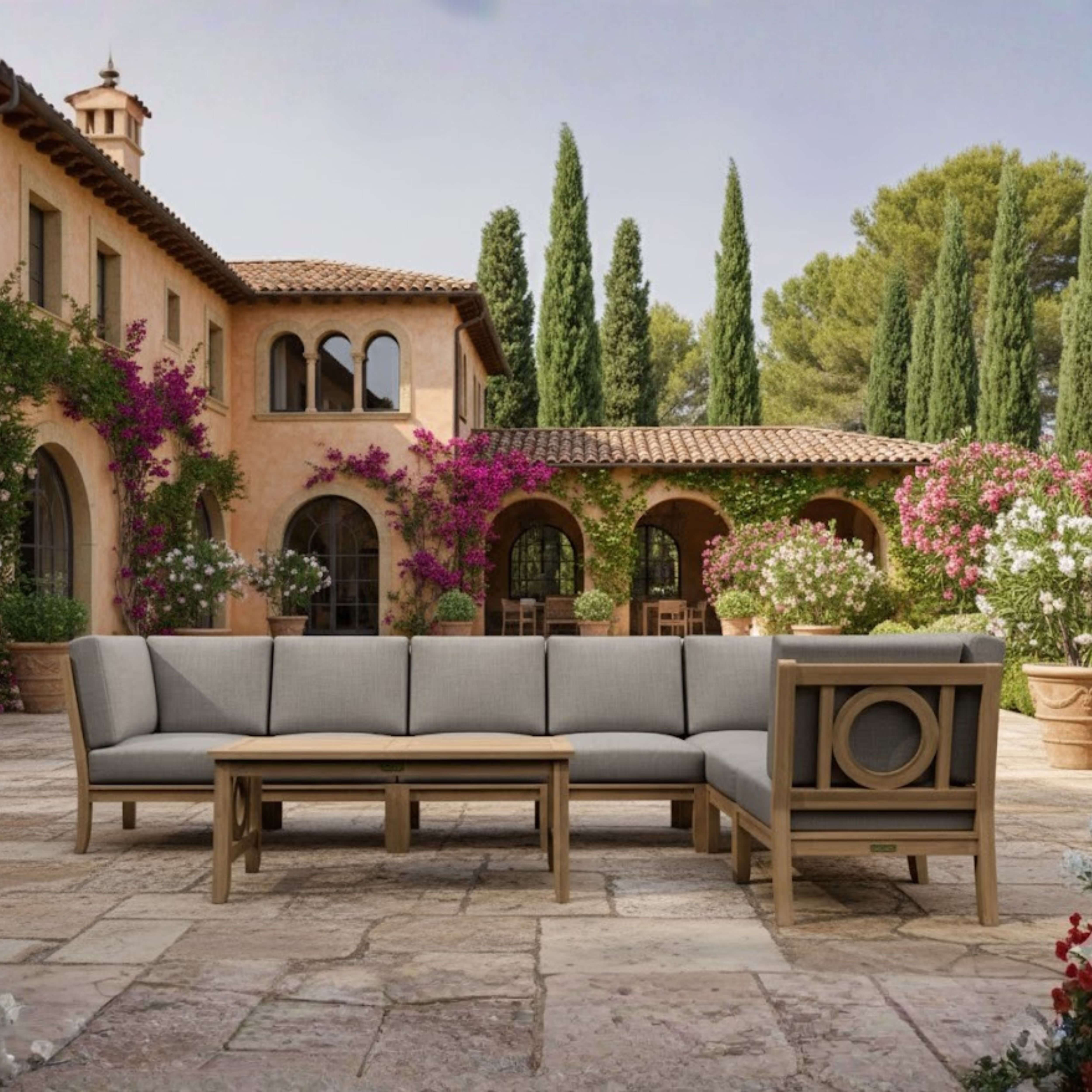 Crafted from the world's finest teak and meticulously joined using mortise-and-tenon joinery, the Natsepa Deep Seating Group brings the elegance of indoor living to your outdoor space. This versatile collection, featuring Corner, Center, and Ottoman pieces, allows for customizable configurations to perfectly suit your backyard's size and style.