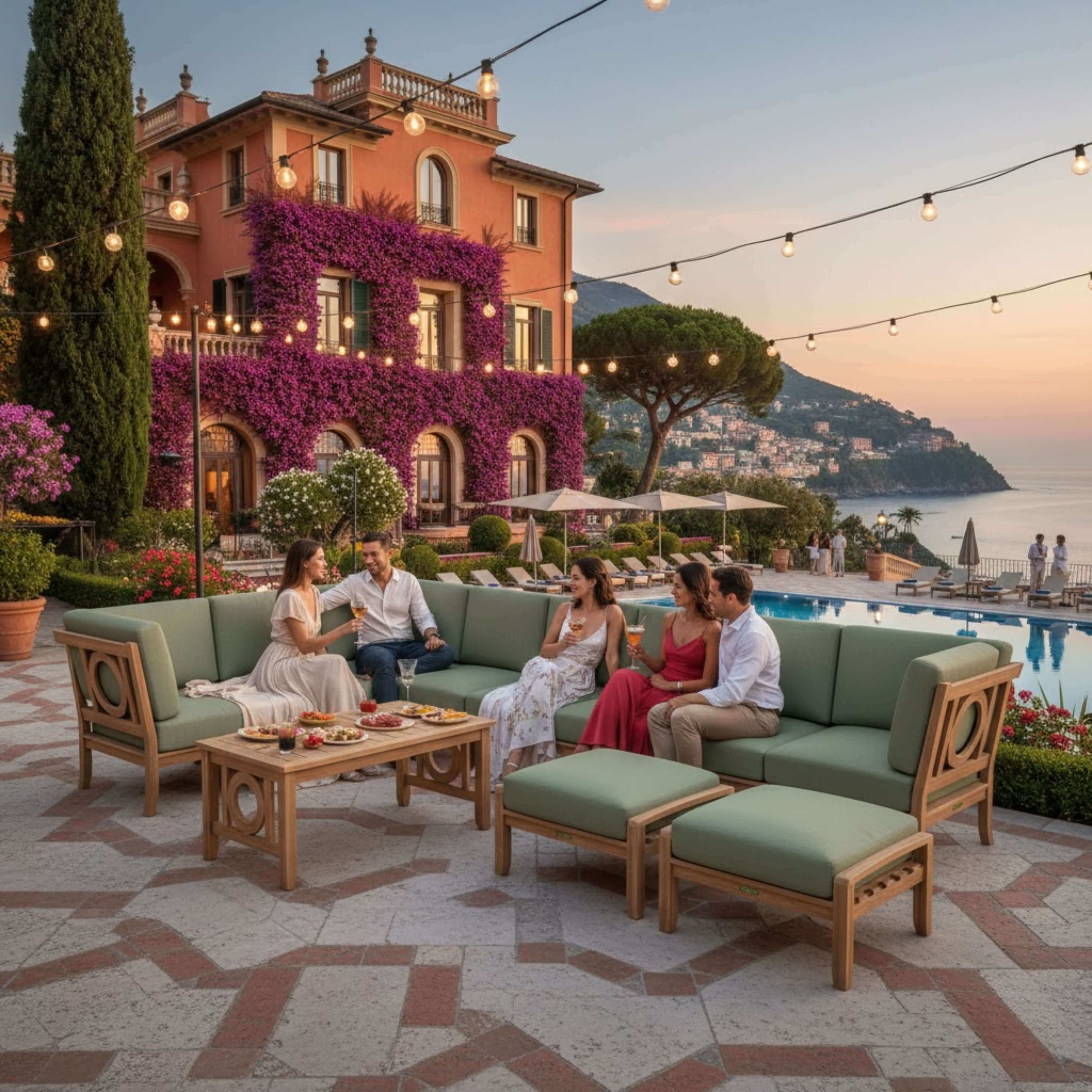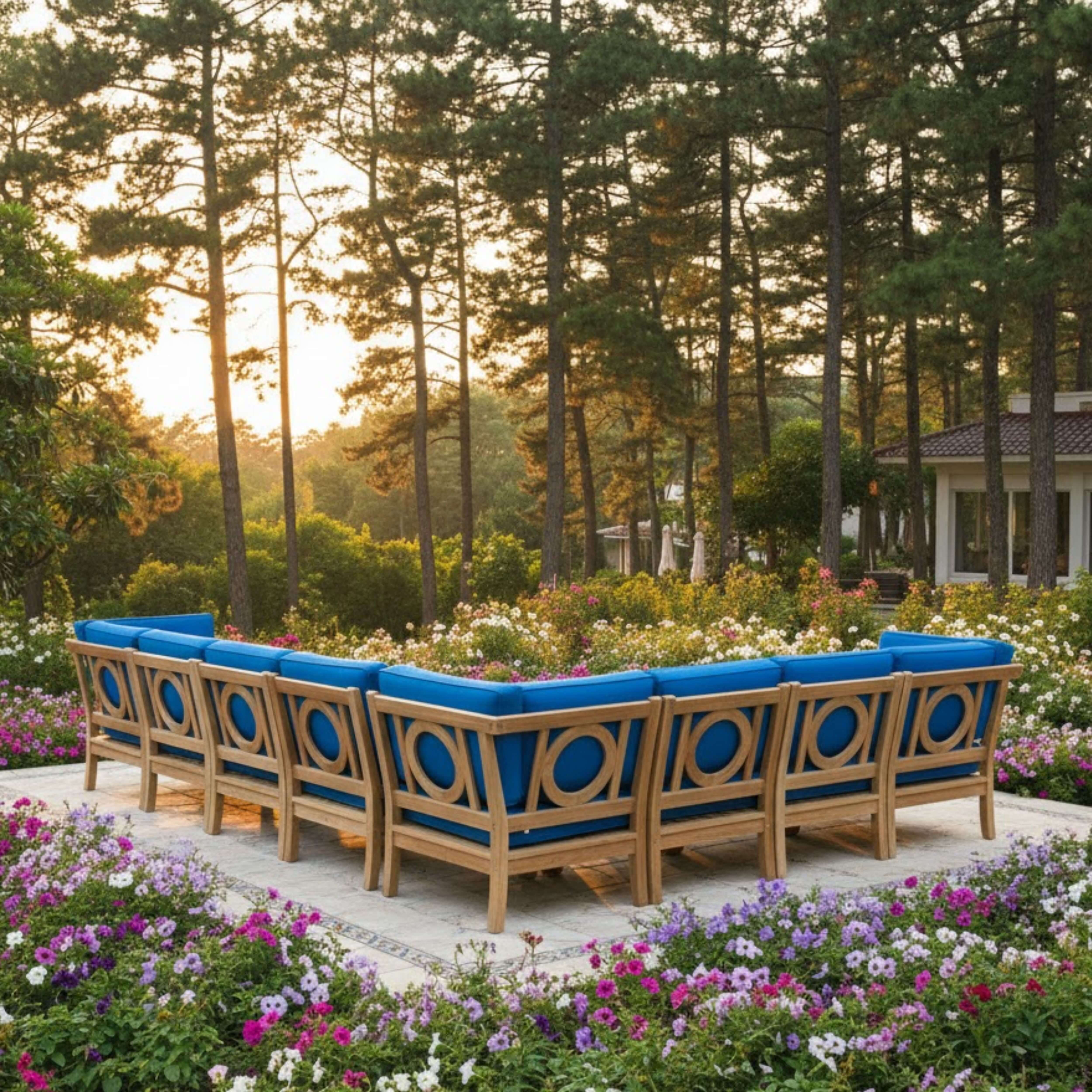 • Cushions designed for long-lasting durability with resistance to mold and mildew.