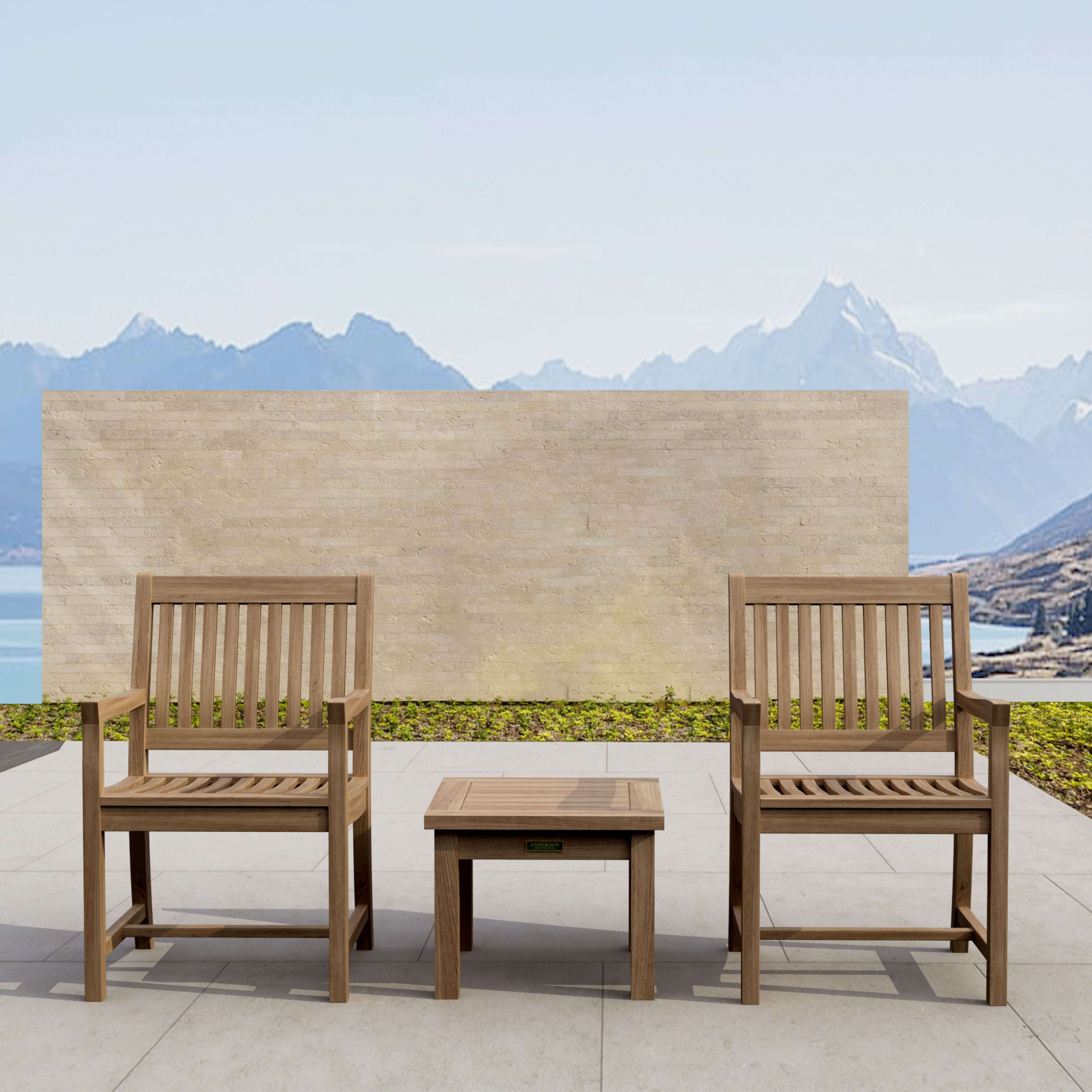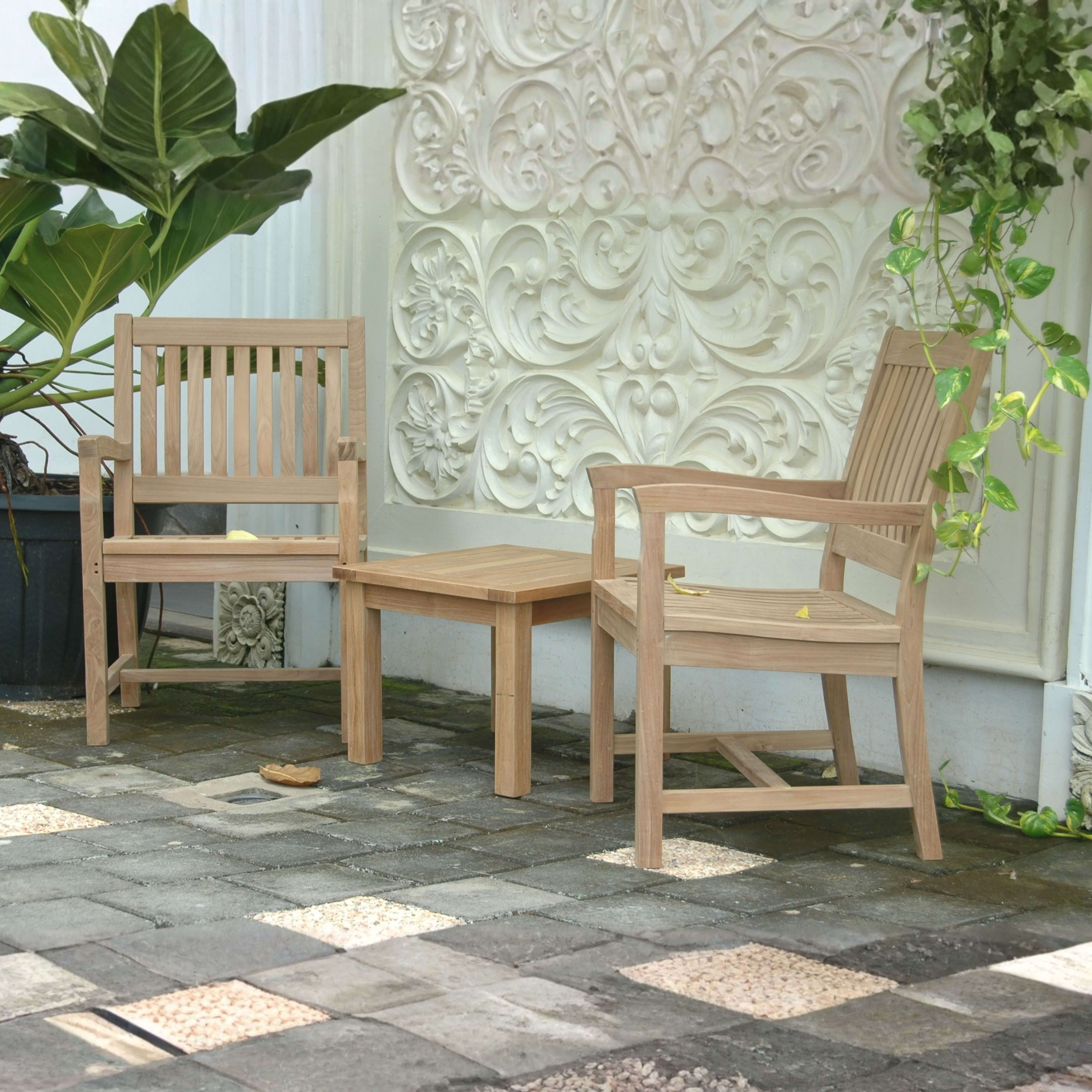 A perfect match for your patio or porch! Having two Rialto dining armchairs and one functional side table make your backyard a nice place for relaxing after a long day of work. The Rialto armchair have curve back to support your lower and upper back as well as the seat. While the mini side table is also perfect for putting glass of drinks or newspaper. You can use the functional mini side table as an additional seat since the table is strong and sturdy. Place this collection at the center of your backyard, will amazed your family and friends. SET-19 is well designed and is made for generations. Add all weather Sunbrella cushions for more comfort at your choice of colors.