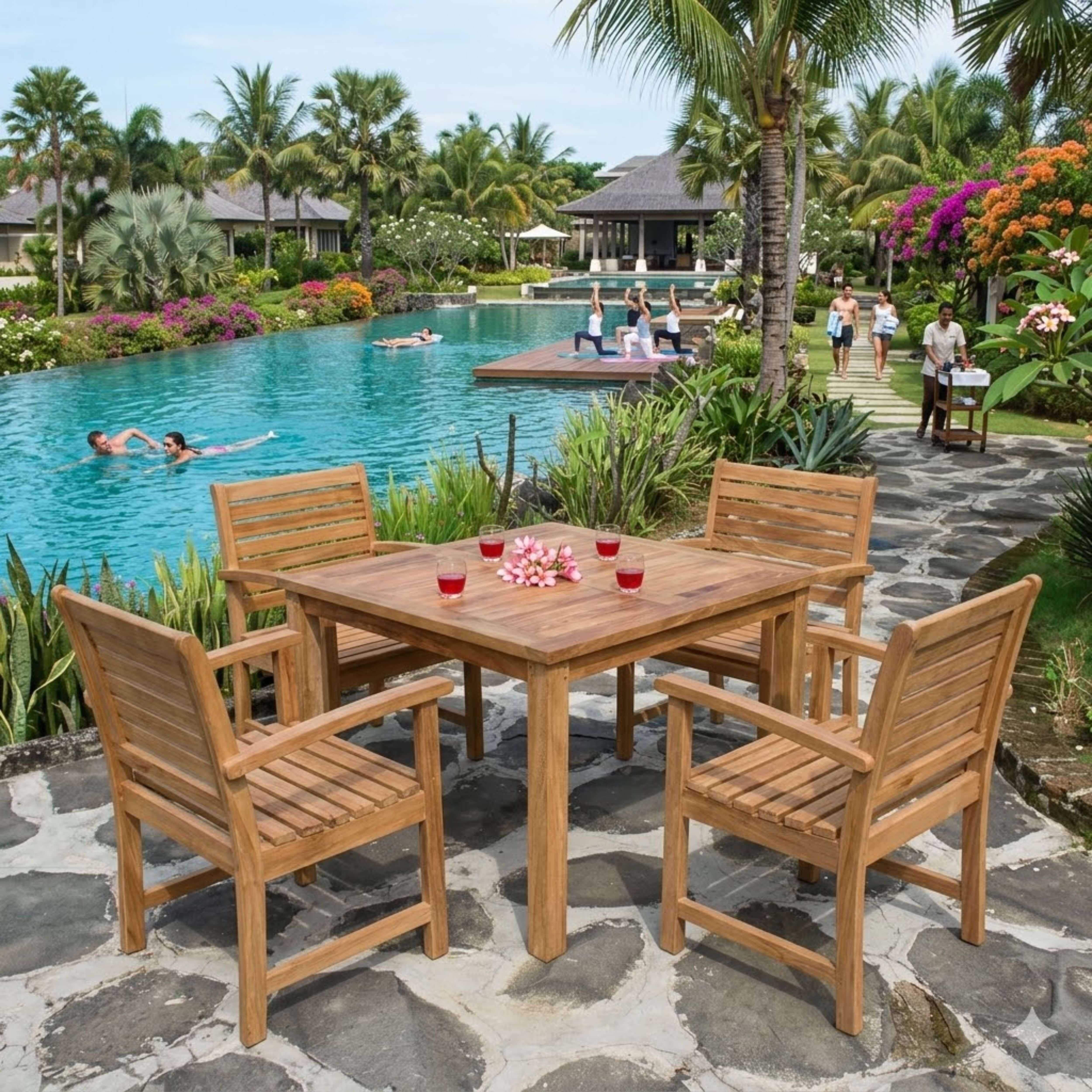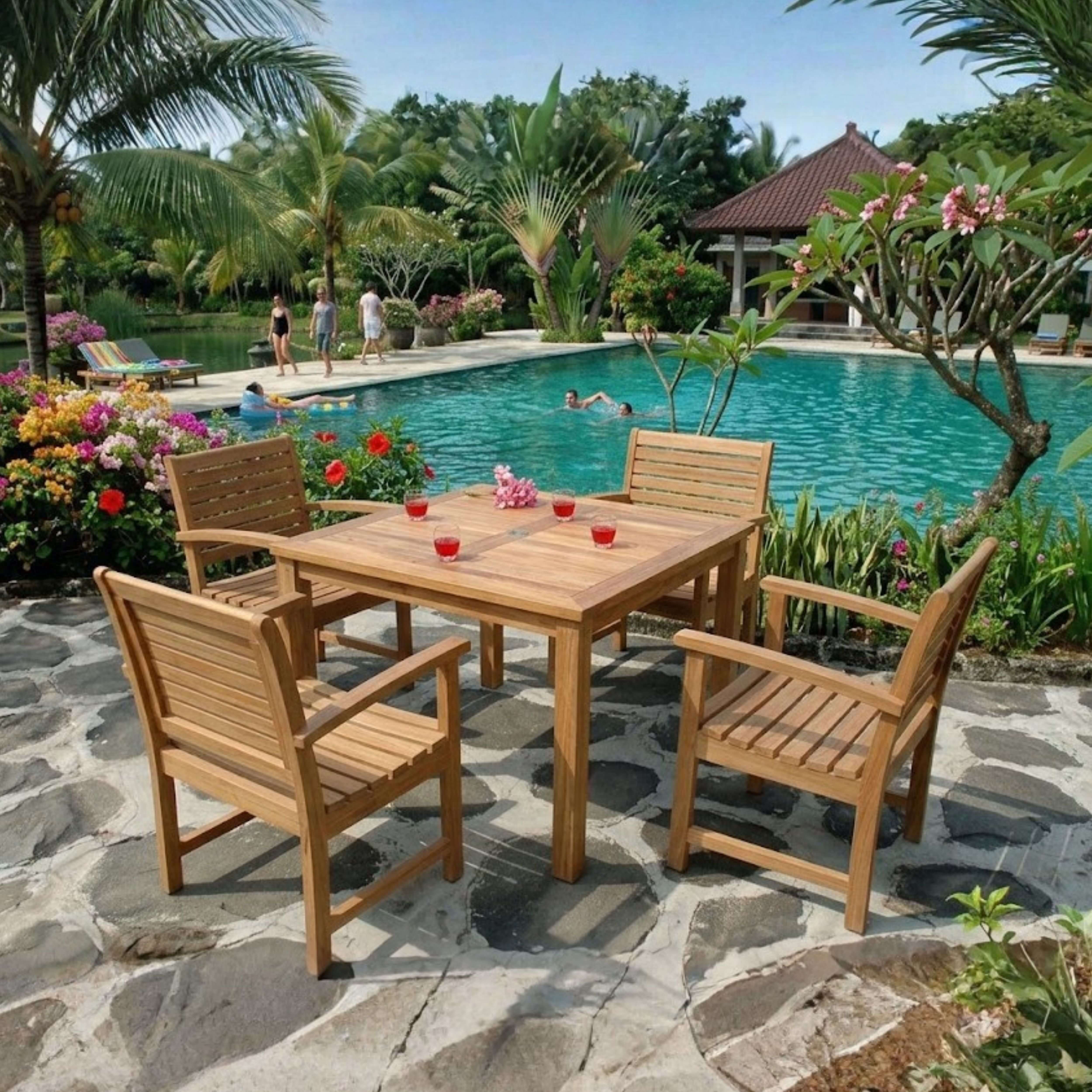The Montage square dining set accommodate up to four people. These table is match with Victoria Armchair which is strong yet comfortable enough for sitting gathering with family and friends for hours. The table comes with an umbrella hole and brass plug to accommodate umbrellas with up to 2 inches diameter poles. The table and chairs come in knock down and easy to assemble. Add Sunbrella cushions for more comfort and enjoy the rest of the meal time with your family or friends. Cushions are sold separately.