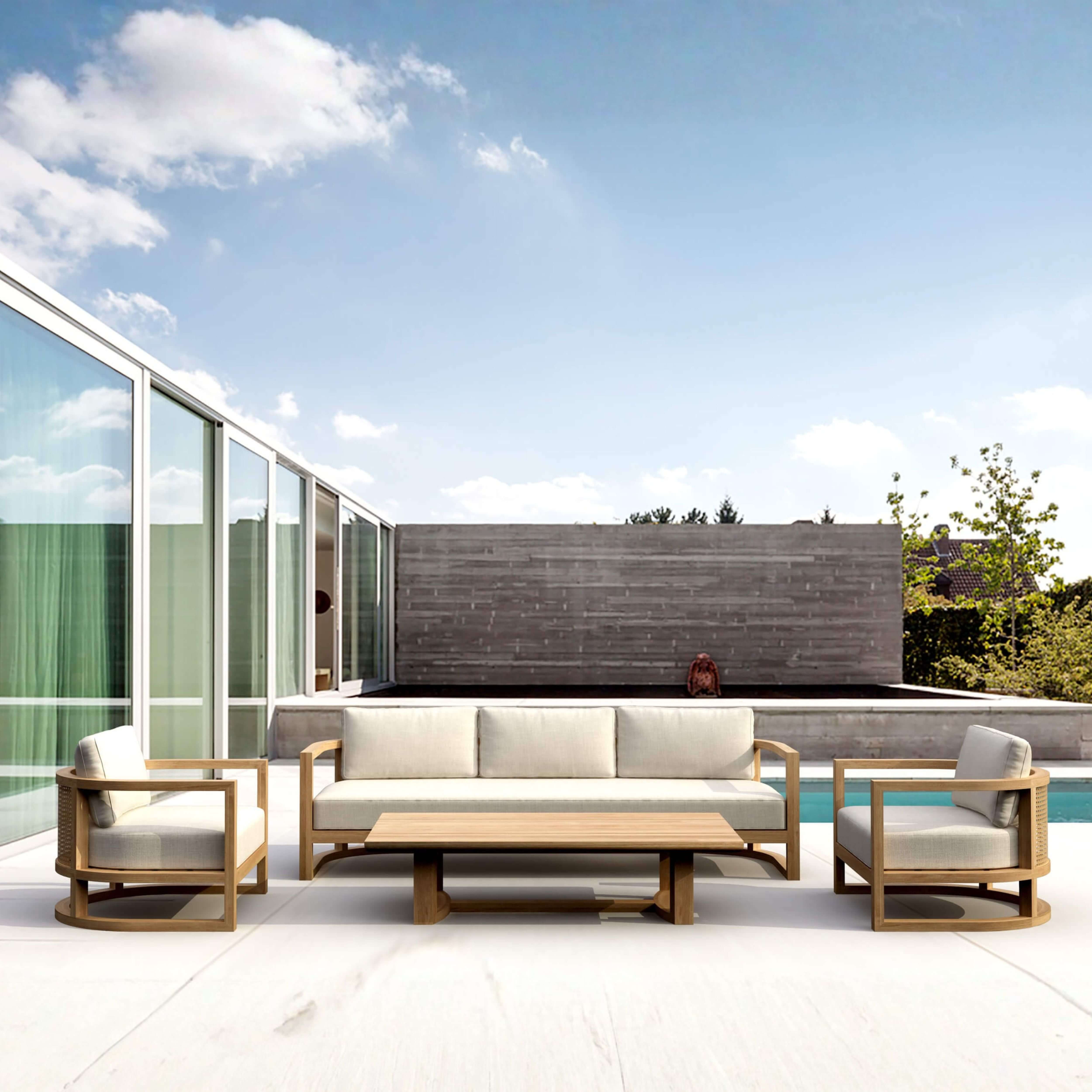 Expertly crafted and shaped to exquisite form this Junus Deep Seating Collection includes two lounge armchairs, one sofa, and the matching rectangular coffee table. Made from premium grade unfinished teak it also features synthetic open wicker showcasing its circular shaped motif. Featuring 5½” thick cushions from Sunbrella Fabrics lounging in comfort has never been more enjoyable around the company of family and friends. The perfect materials to weather the outdoors it requires little to no maintenance that’s made to last.