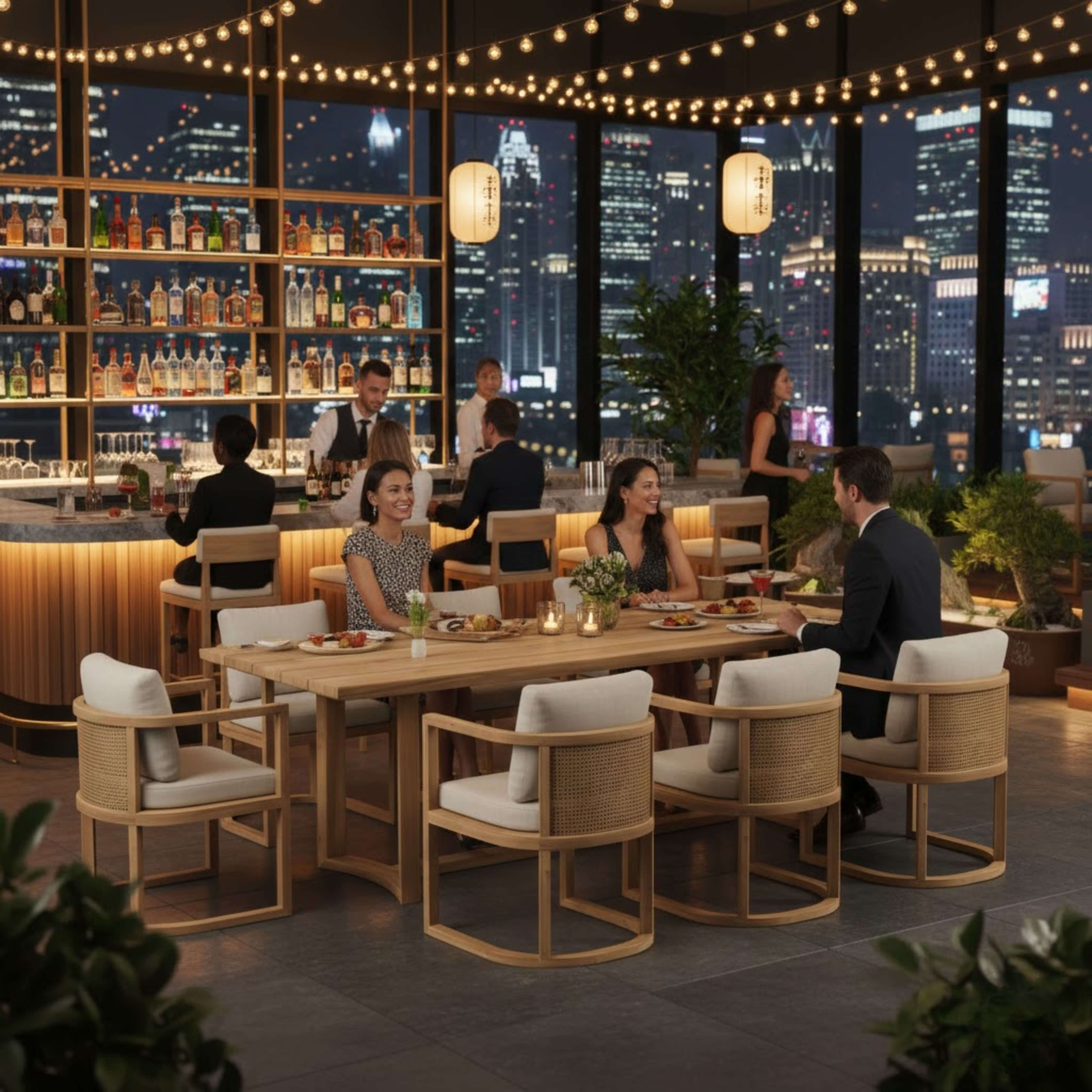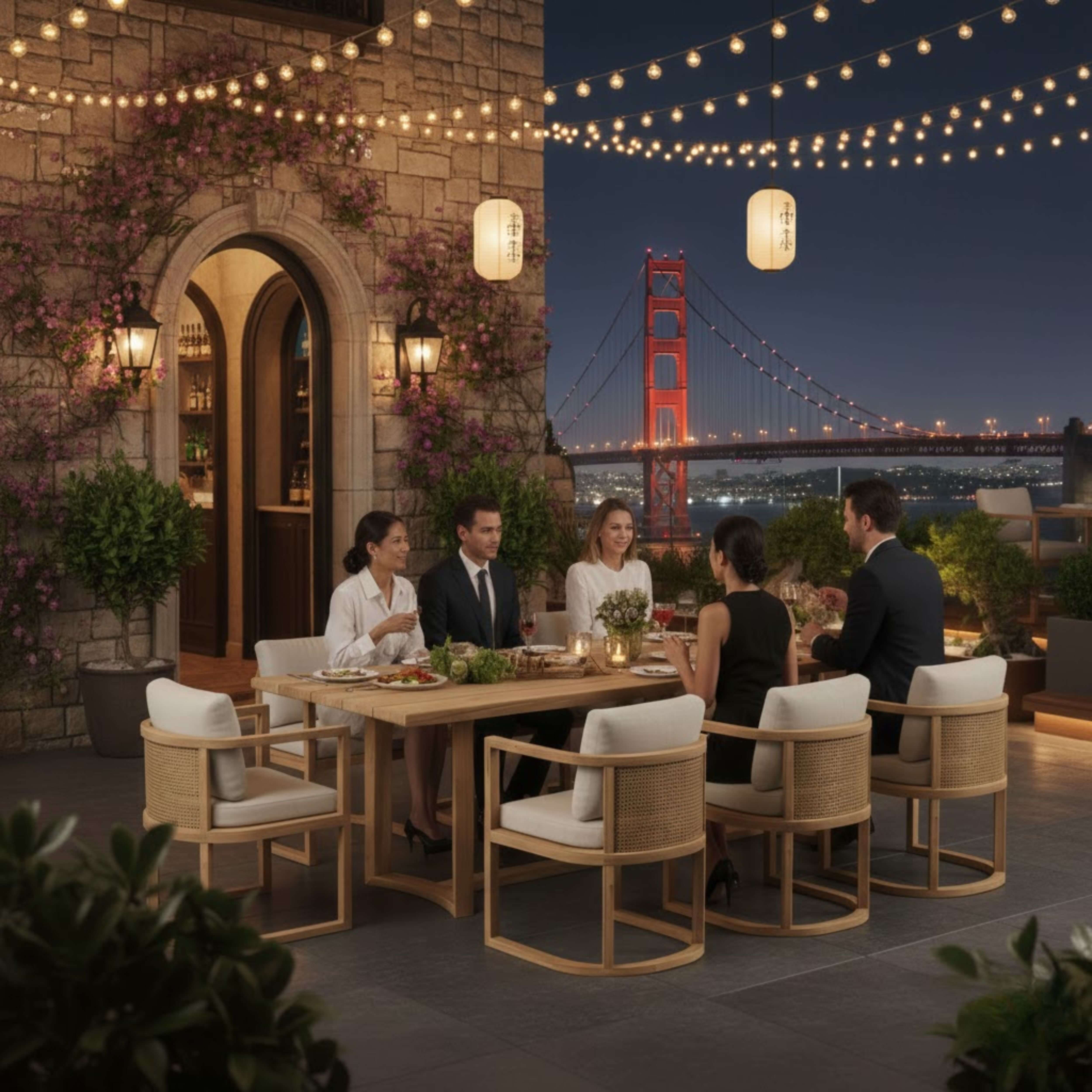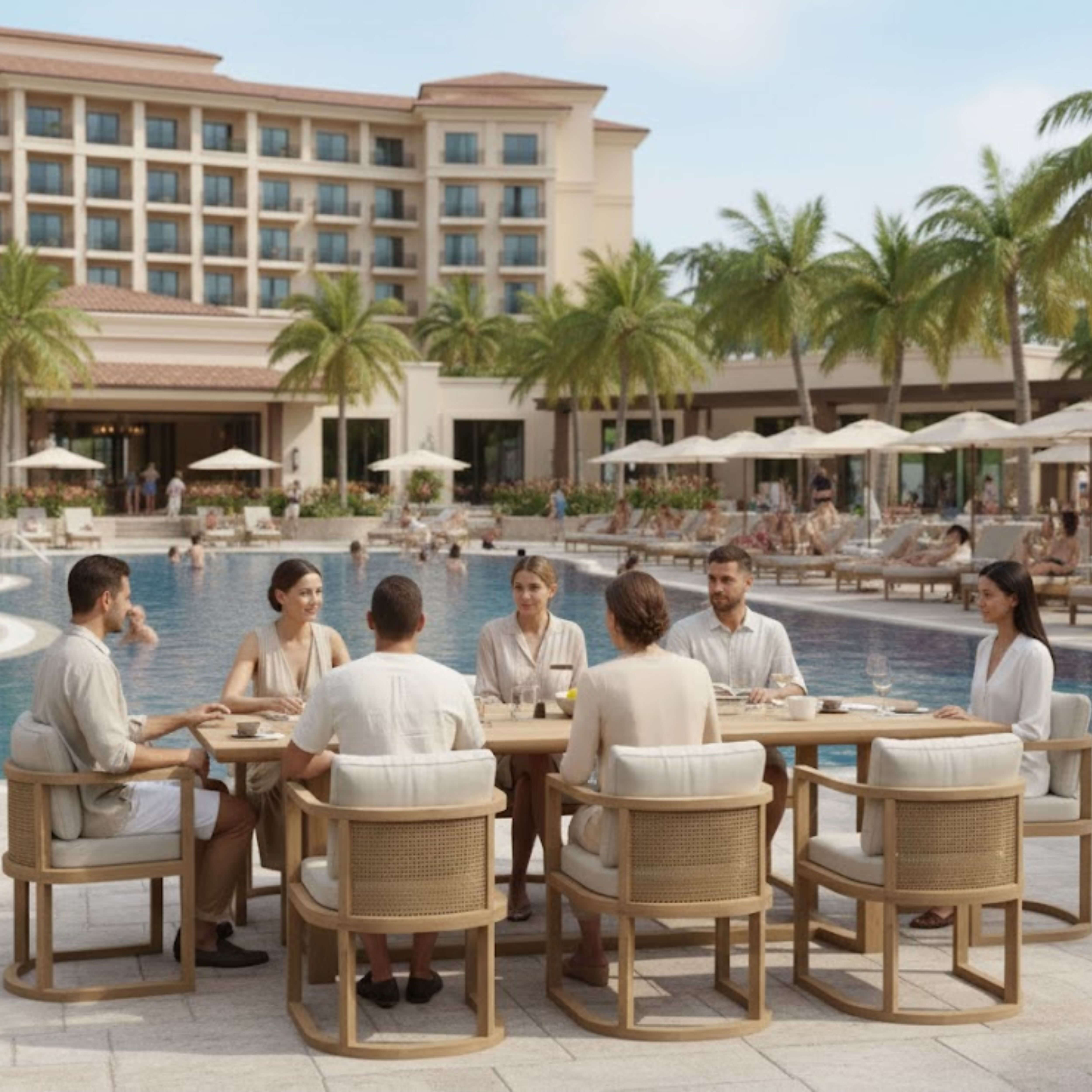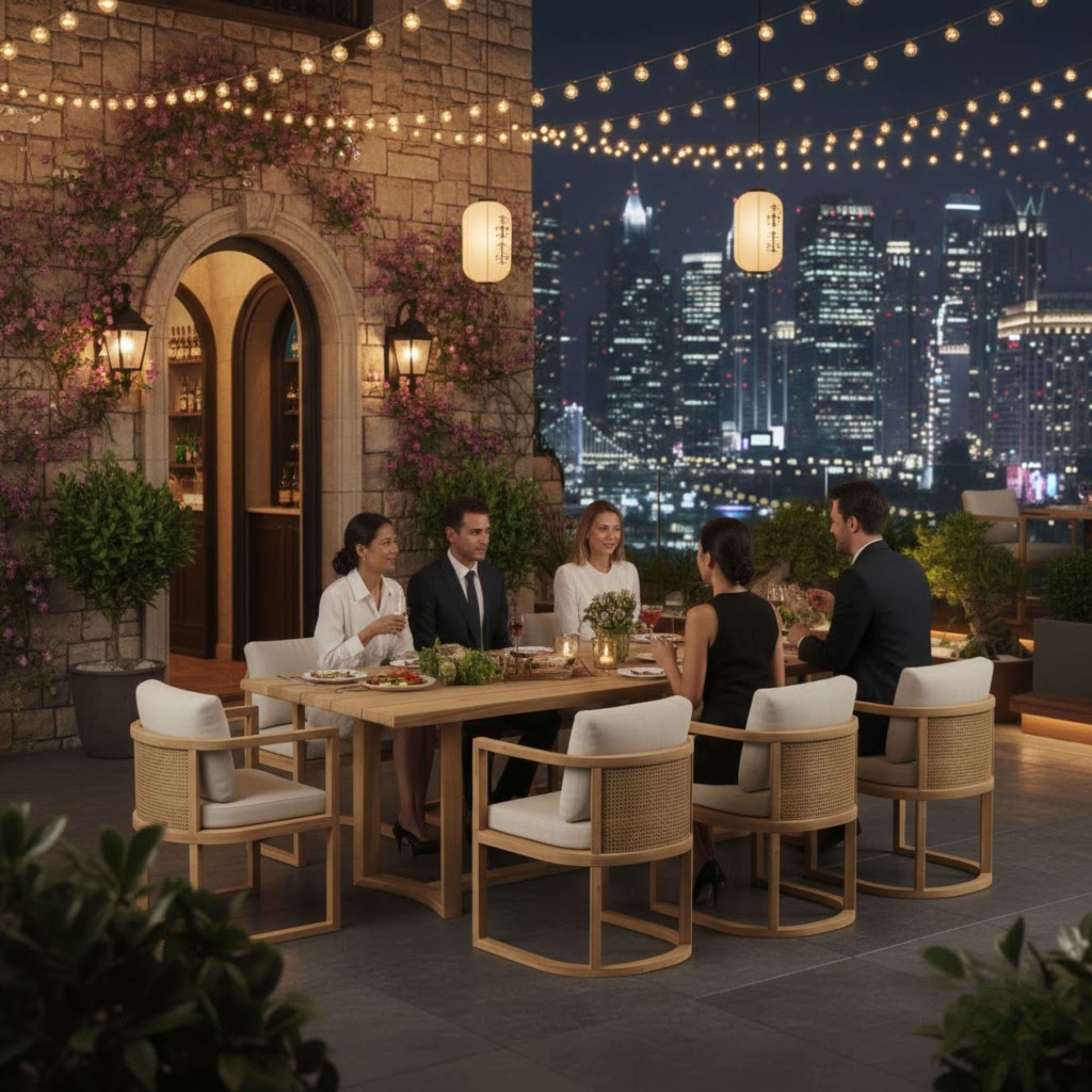 Enjoy the comforts of outdoor dining with the Junus Dining Table Set. Featuring One Junus Dining Table and Six Dining Armchairs it’s made of premium unfinished teak and synthetic wicker. The Junus Dining Table measuring 102" in wide by 39" in depth is a sturdy and well-built teak outdoor dining table for the home or yard. It fits six Junus Dining Armchairs, expertly crafted and shaped to exquisite design. Chairs include 2” thick Sunbrella Fabric Cushions and Pillow ensuring a relaxing and most comfortable dining experience.