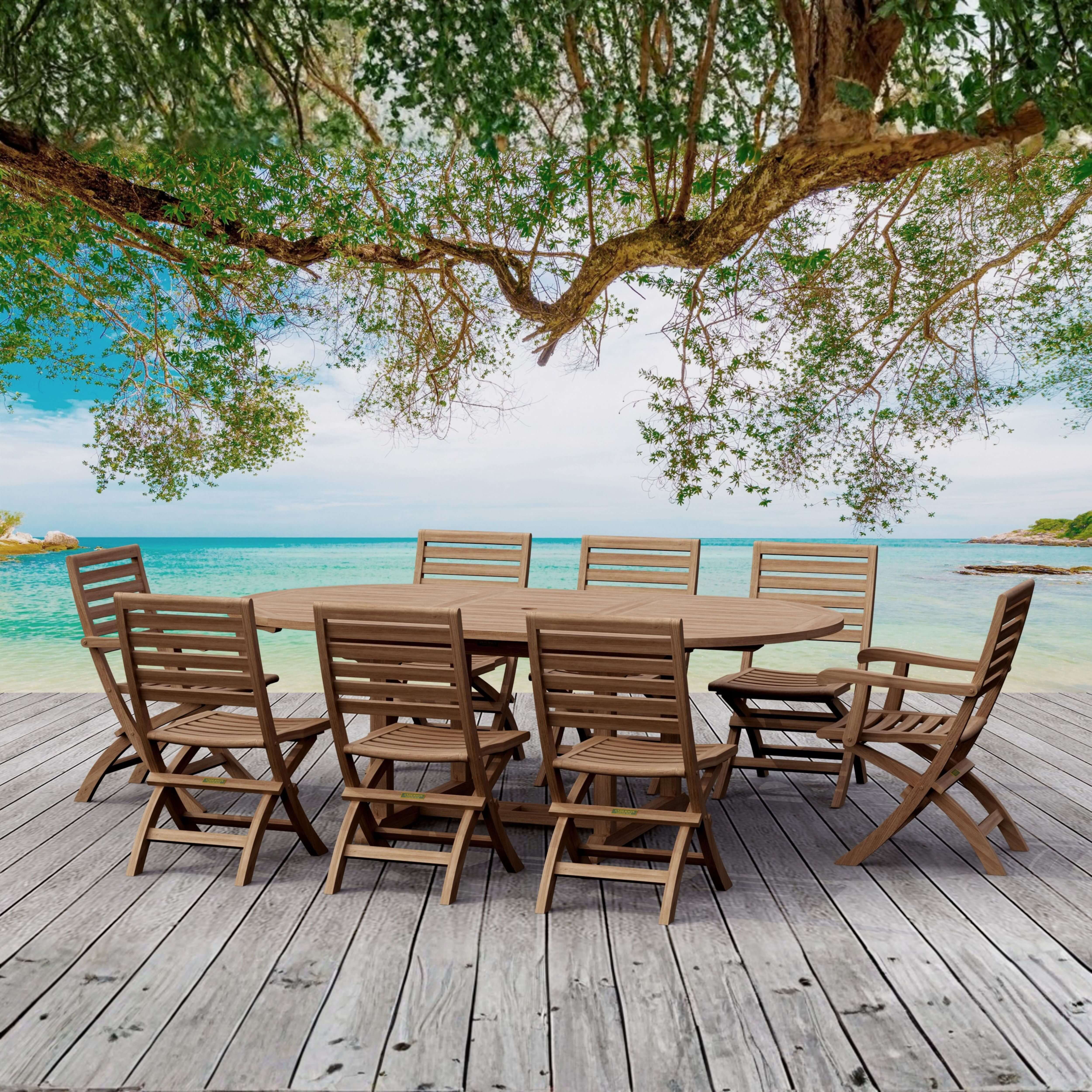 Enjoy the rest of the evening with friends and family while sitting on the Andrew Folding Chair with Bahama oval extension table. This set fits for 6-8 people comfortably. Table and chairs are all constructed using mortise and tenon construction for strength and durability. The outdoor furniture made of premium quality plantation teak from our forestry area in South East Asia where the best teak tree grows. This collection is built for generations. Additional all weather cushions from Sunbrella can be applied for extra comfort.