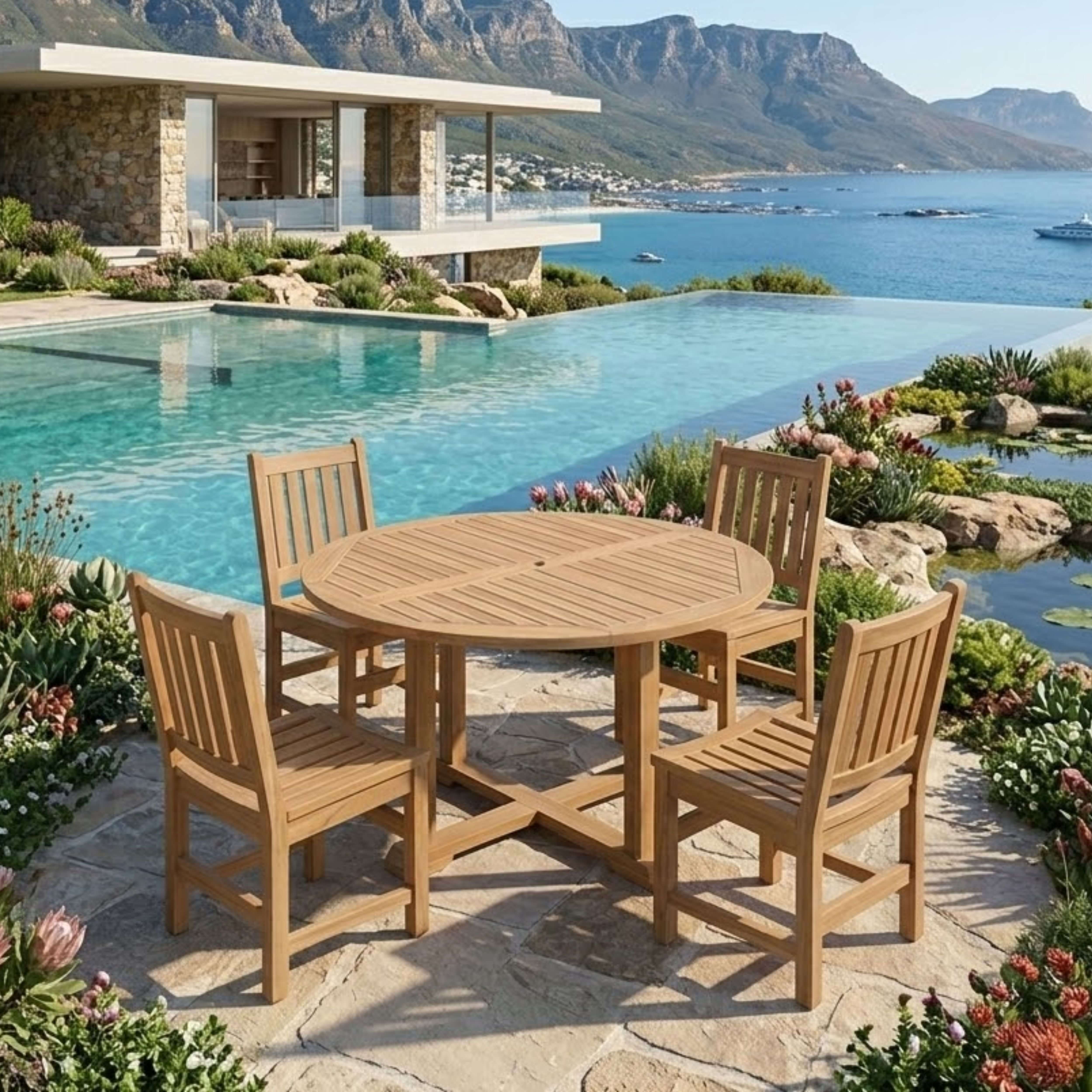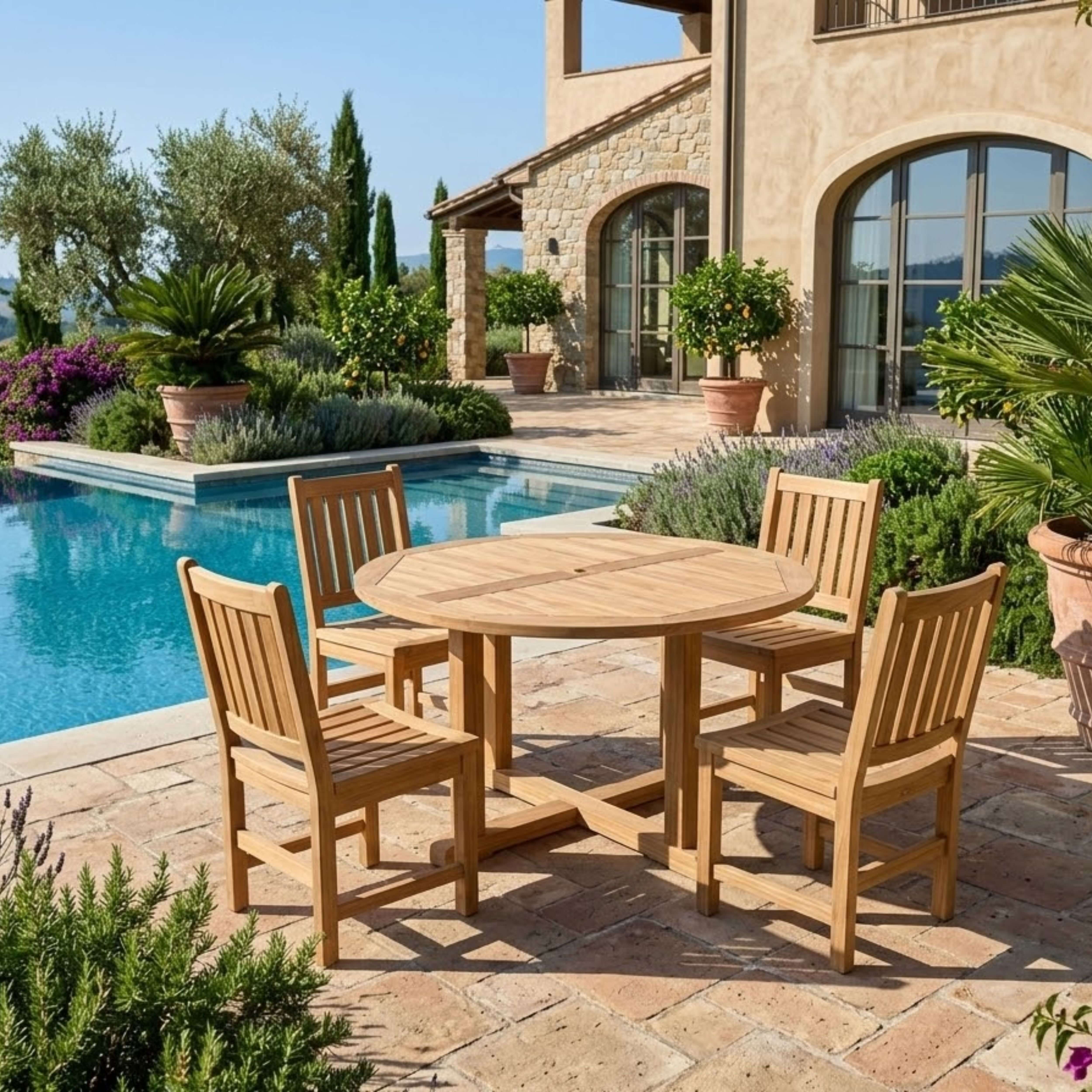 The Tosca 47″ wood table is a round dining table that is perfect for both indoors and out. Perfect size for 4 people while enjoying the dine surrounding with friends or family. Combining with Sonoma side chairs will make this set be the center of the evening conversation. The table and chairs are all constructed using mortise and tenon construction from strength and durability. The set made of premium quality plantation grown teak from South East Asia where the best teak tree grows. It is built with durable teakwood to ensure many years of continued use. Add all-weather cushions from Sunbrella for extra comfort. Cushions are sold separately.