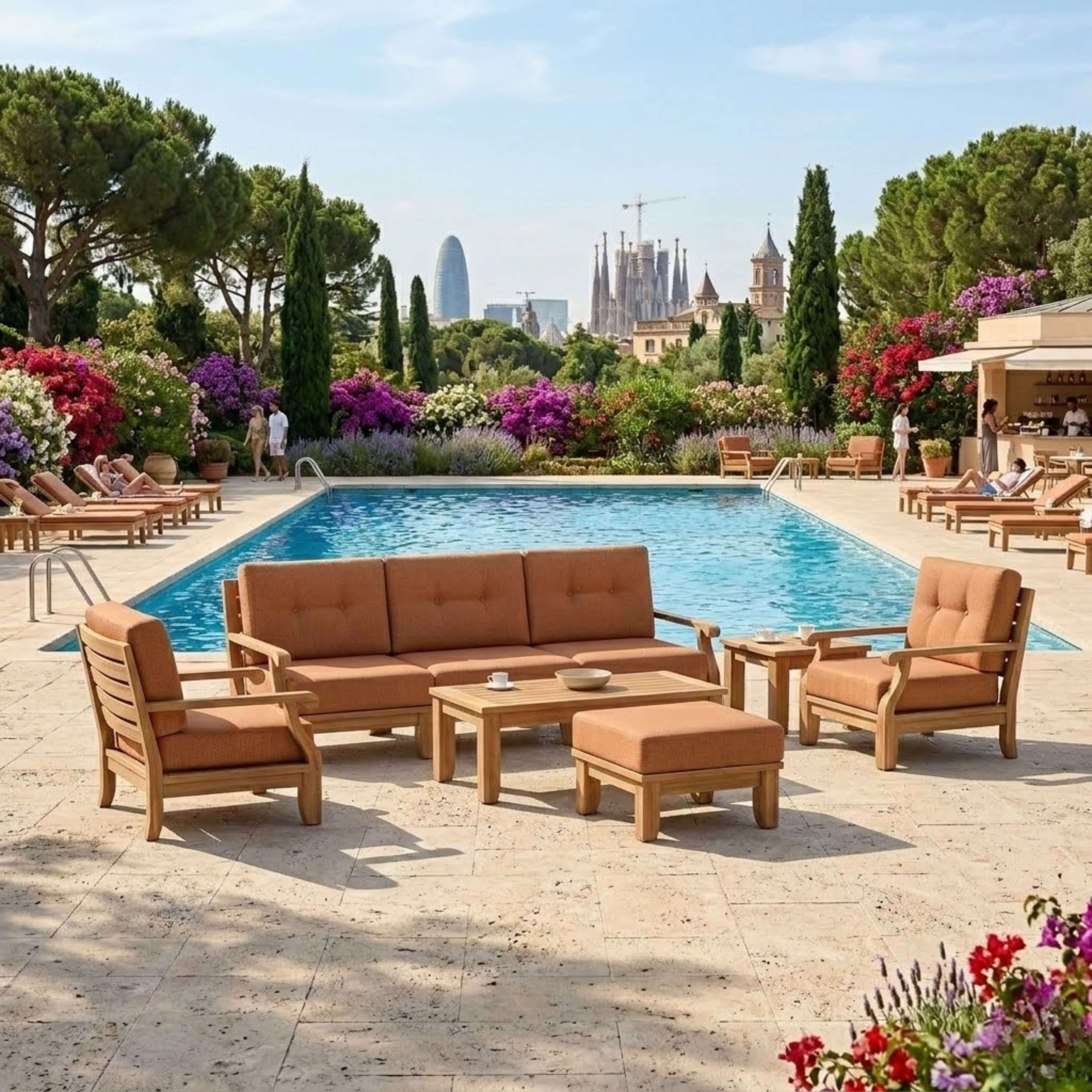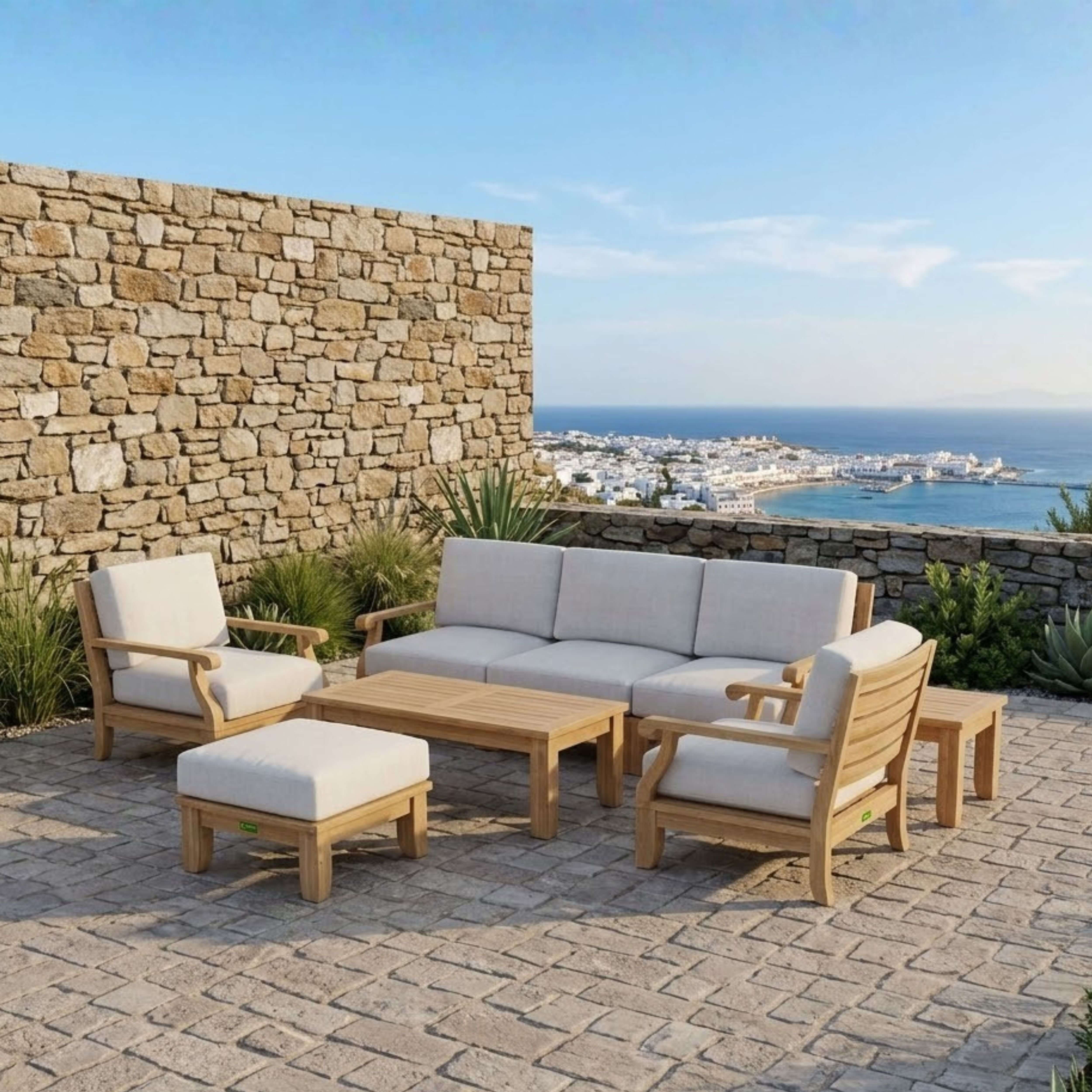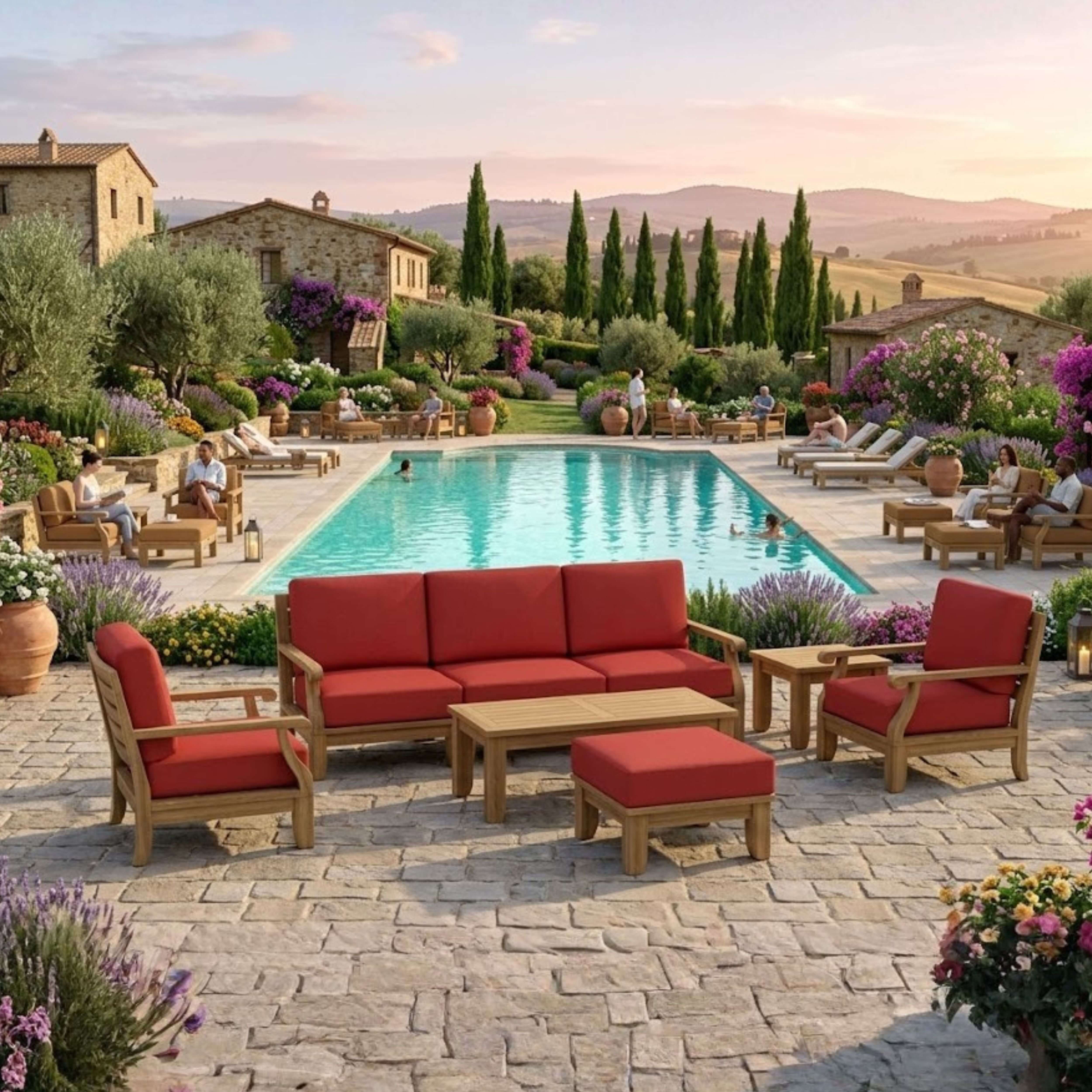 • Expertly Crafted teakwood with 5.5" thick cozy cushions for a luxurious feel.