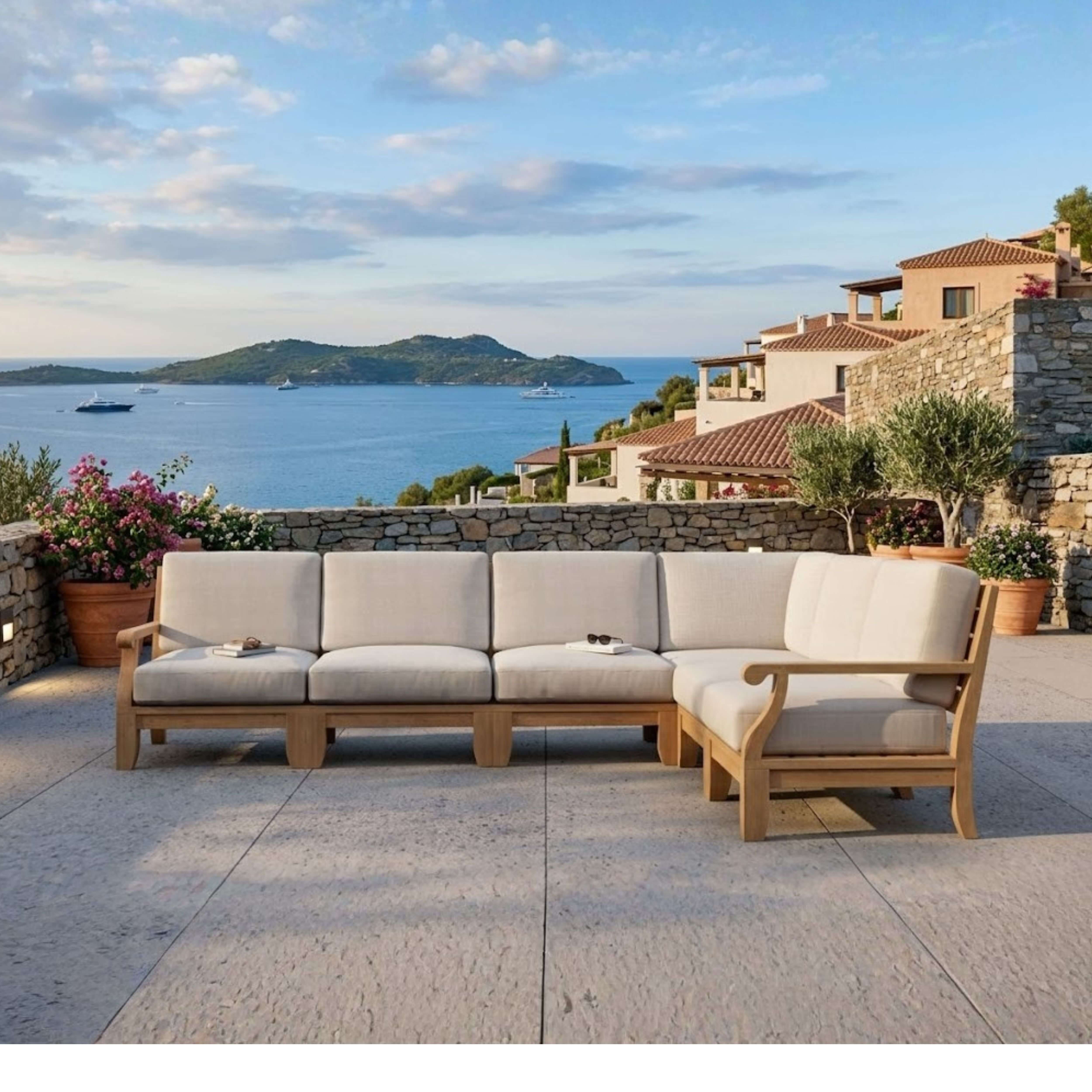 • Expertly Crafted teakwood with 5½" thick cozy cushions for a luxurious feel.