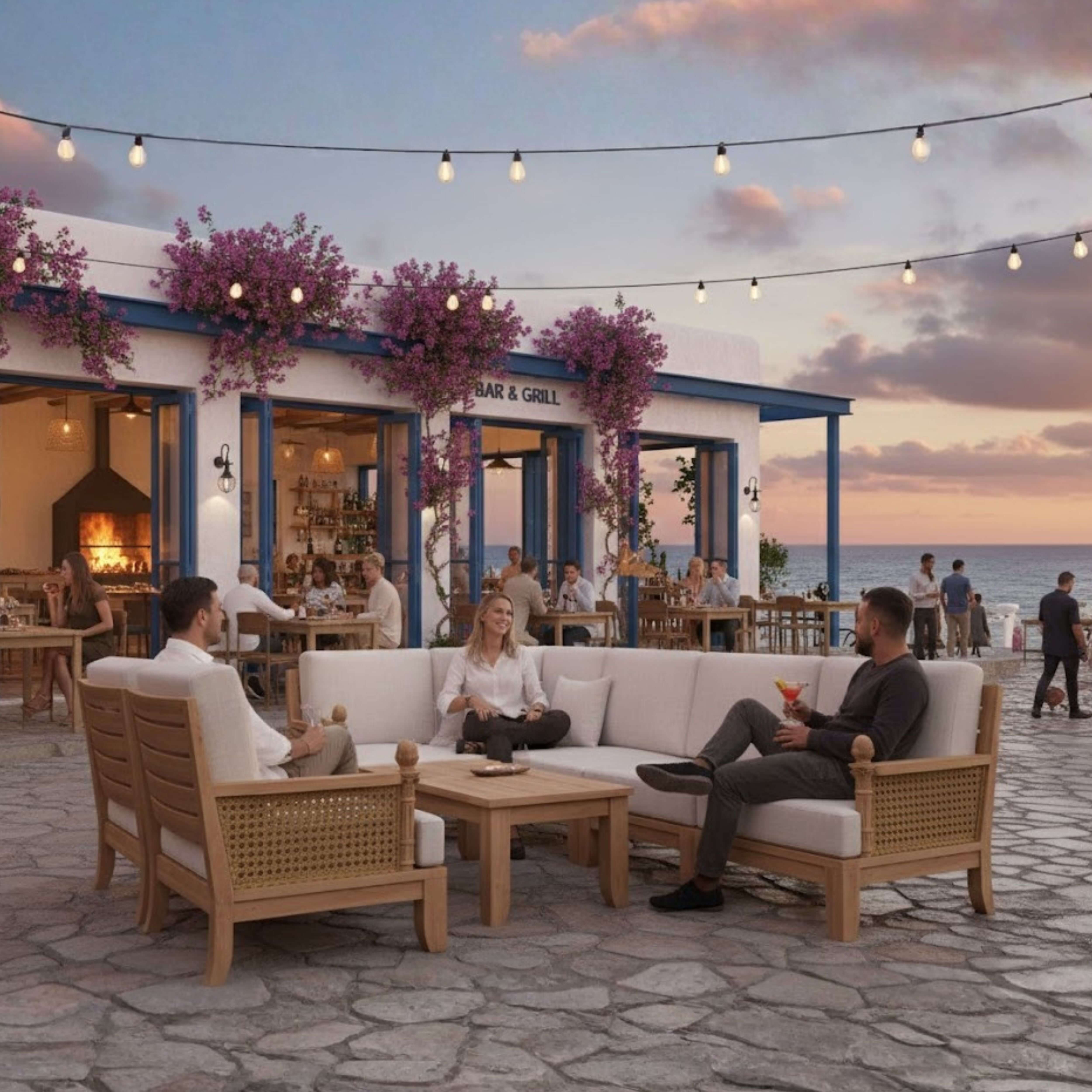 • All cushions will be upholstered in durable Sunbrella fabric.