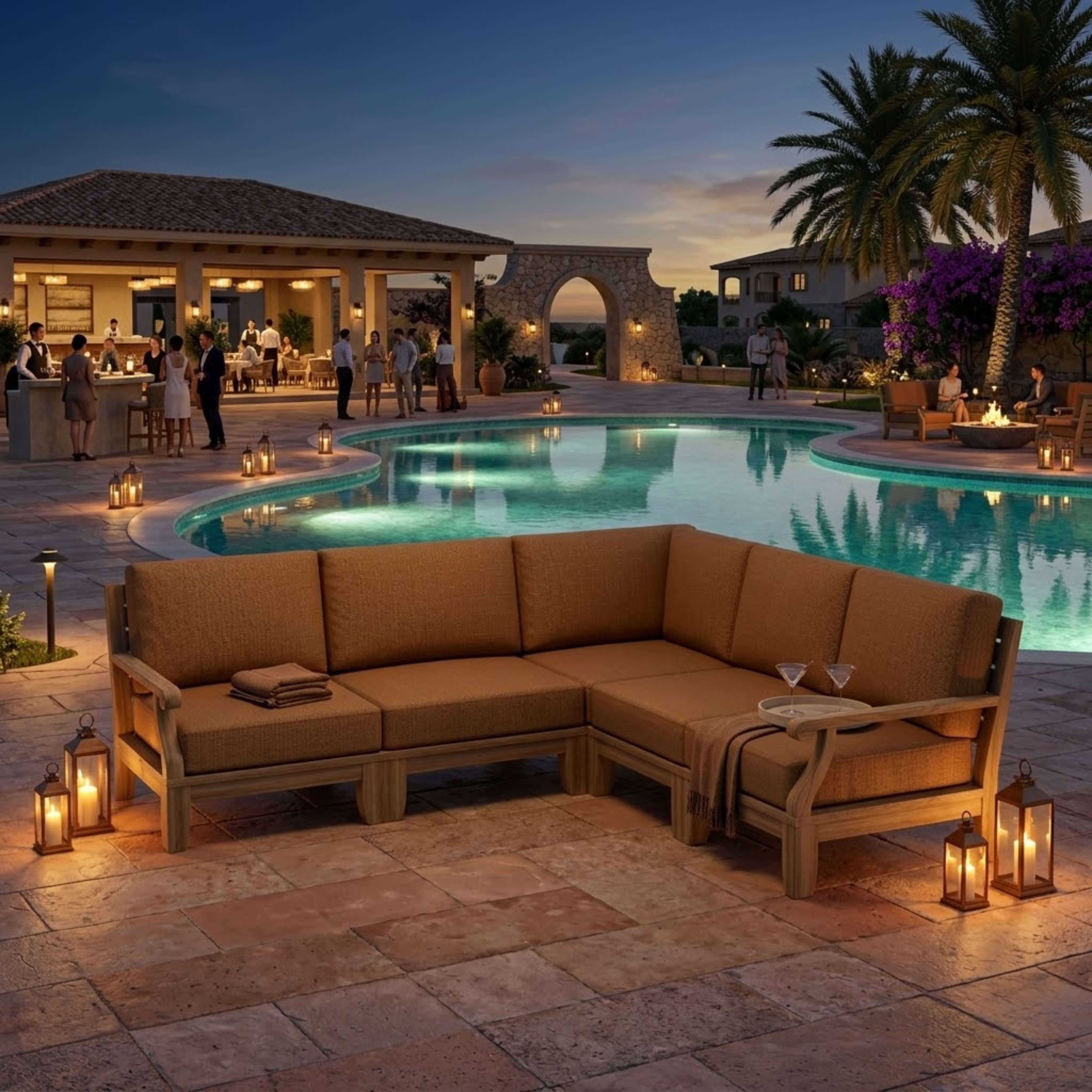 • Expertly Crafted teakwood with 5½" thick cozy cushions for a luxurious feel.