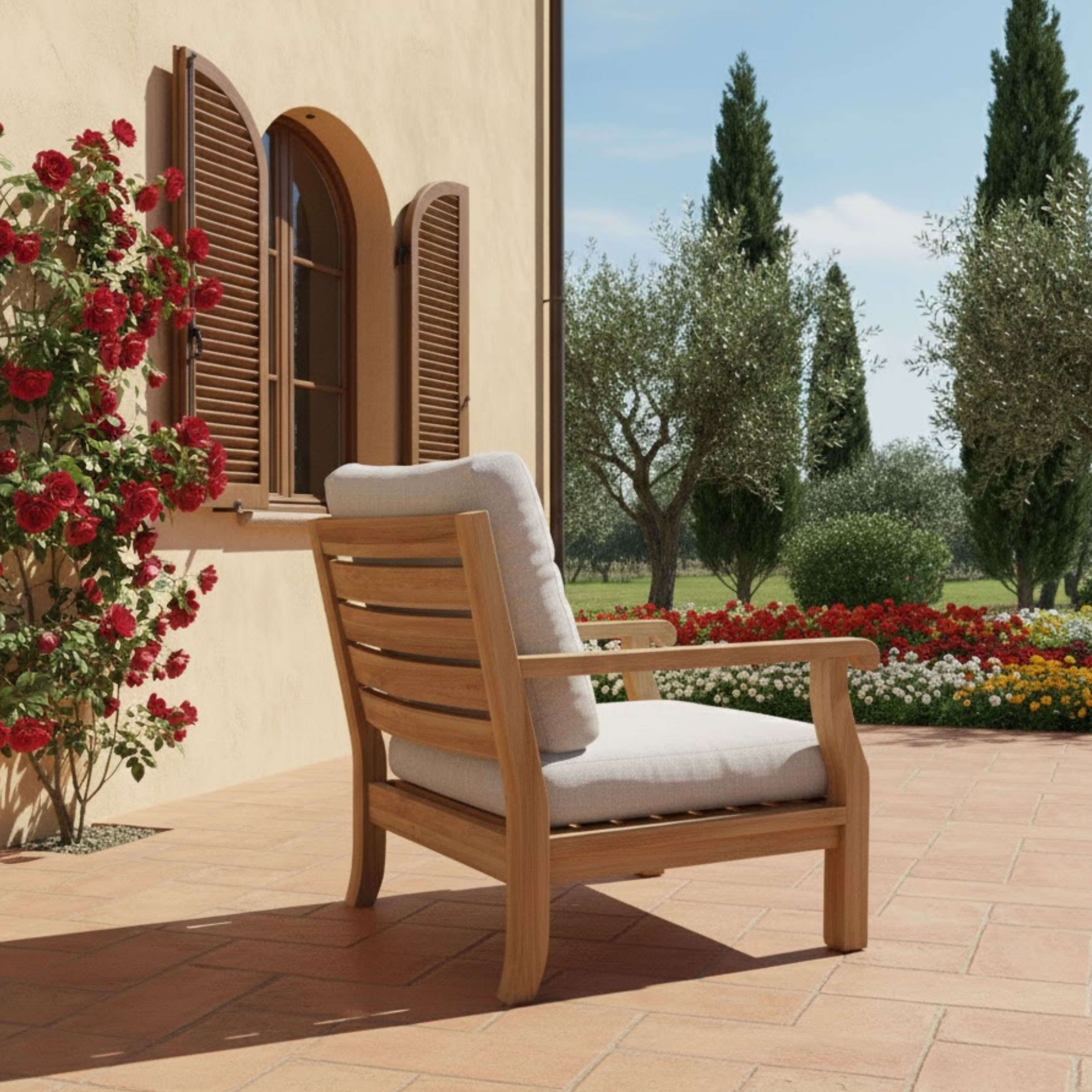 • Expertly Crafted teakwood with 5½" thick cozy cushions for a luxurious feel.