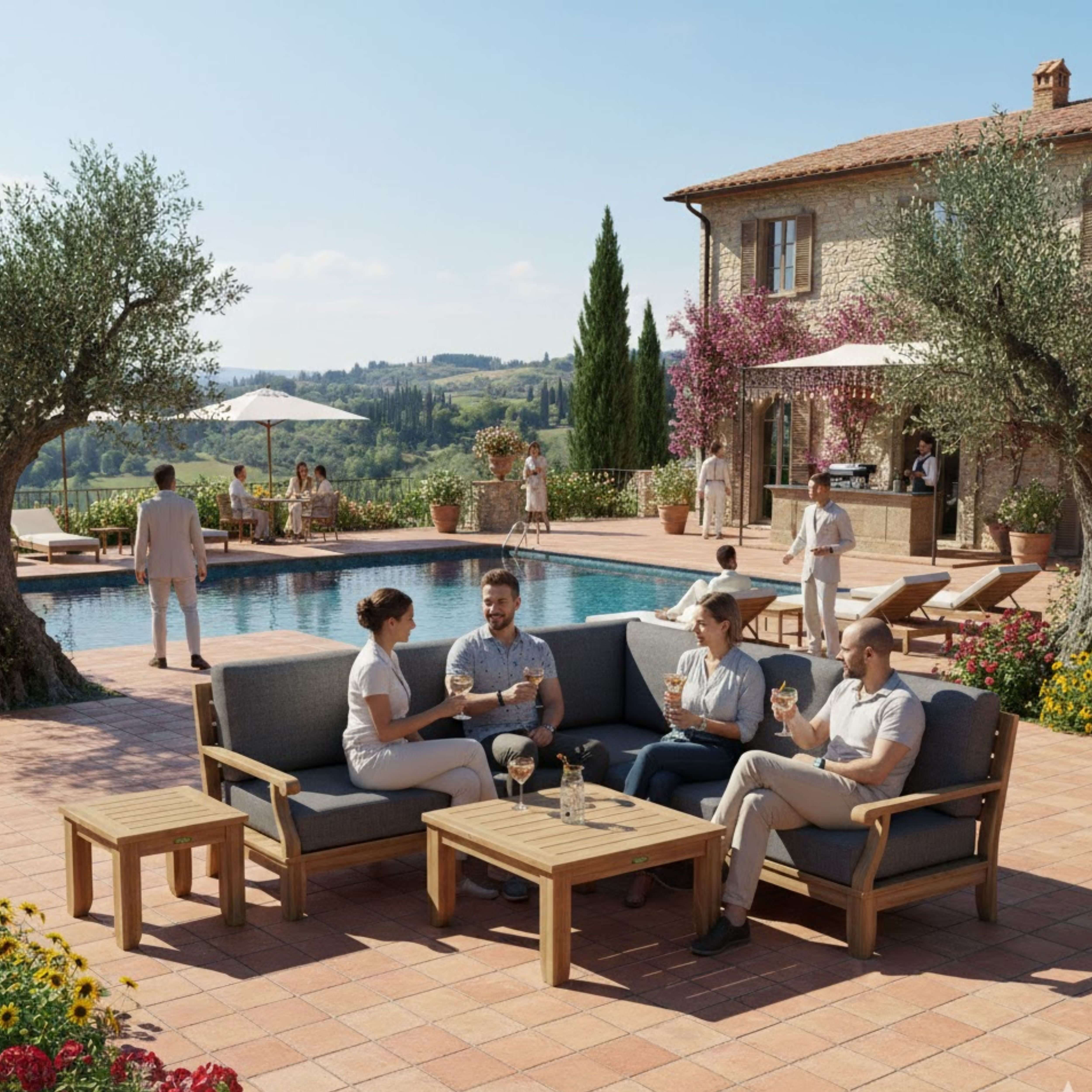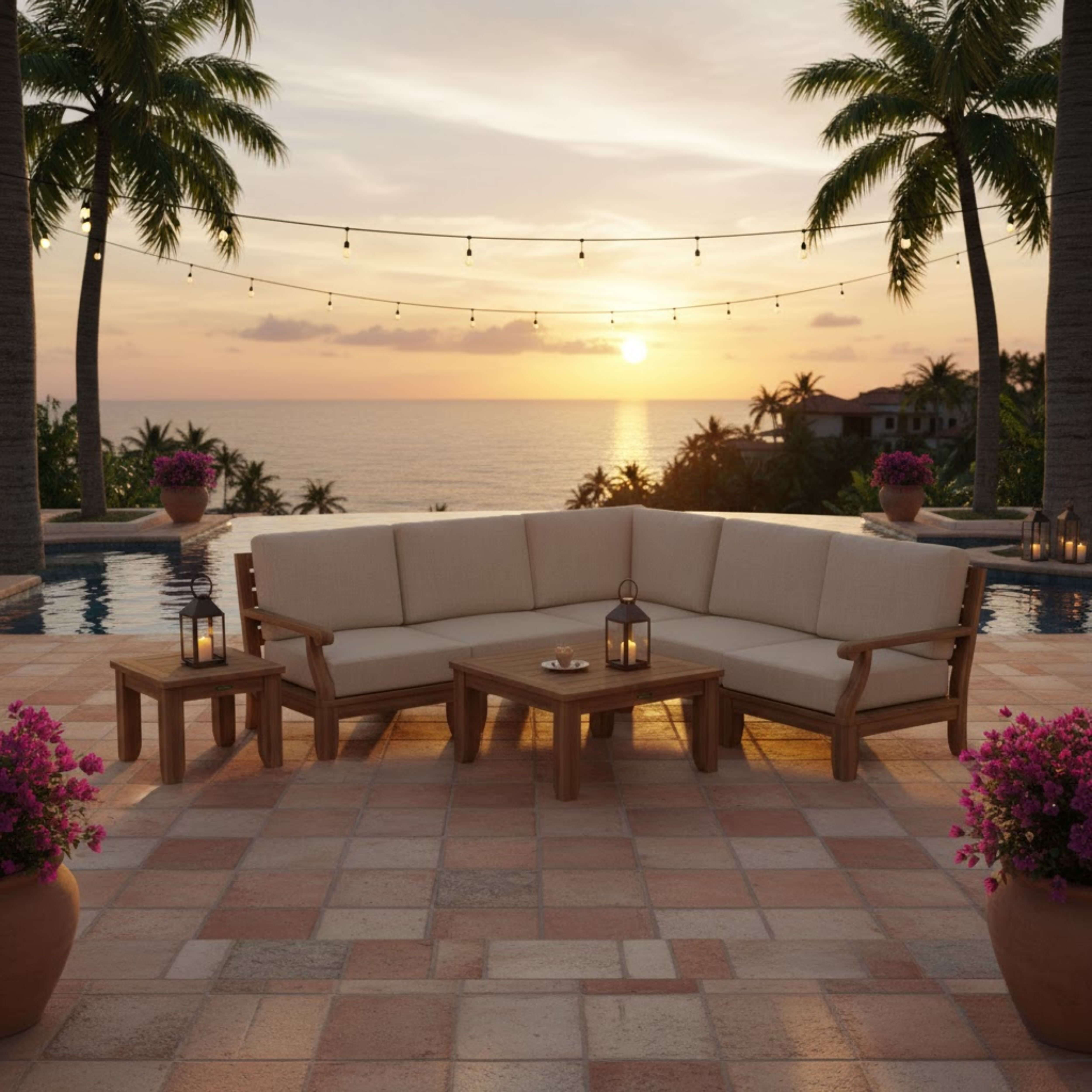• Expertly Crafted teakwood with 5½" thick cozy cushions for a luxurious feel.