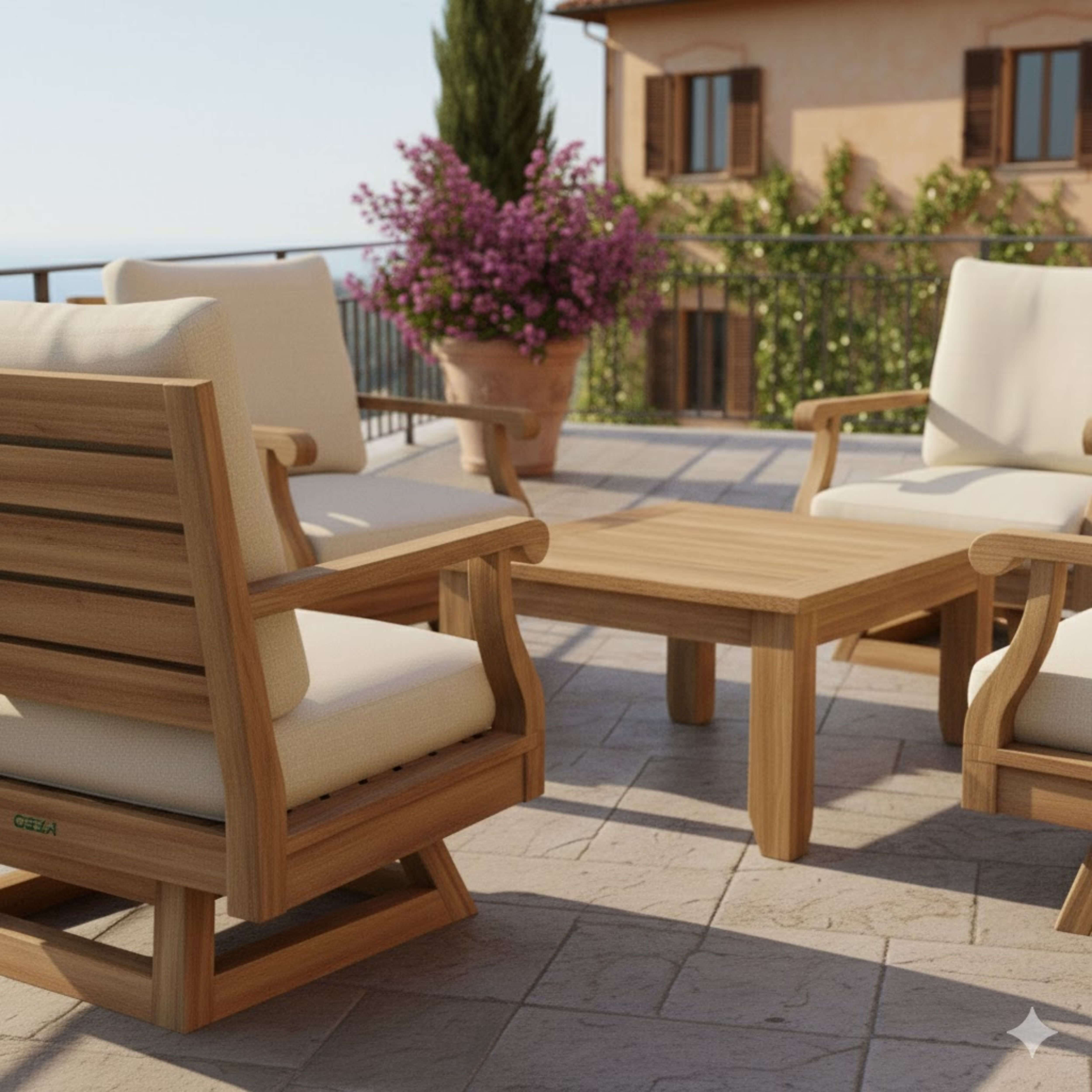 • Expertly Crafted teakwood with 5½" thick cozy cushions for a luxurious feel.
